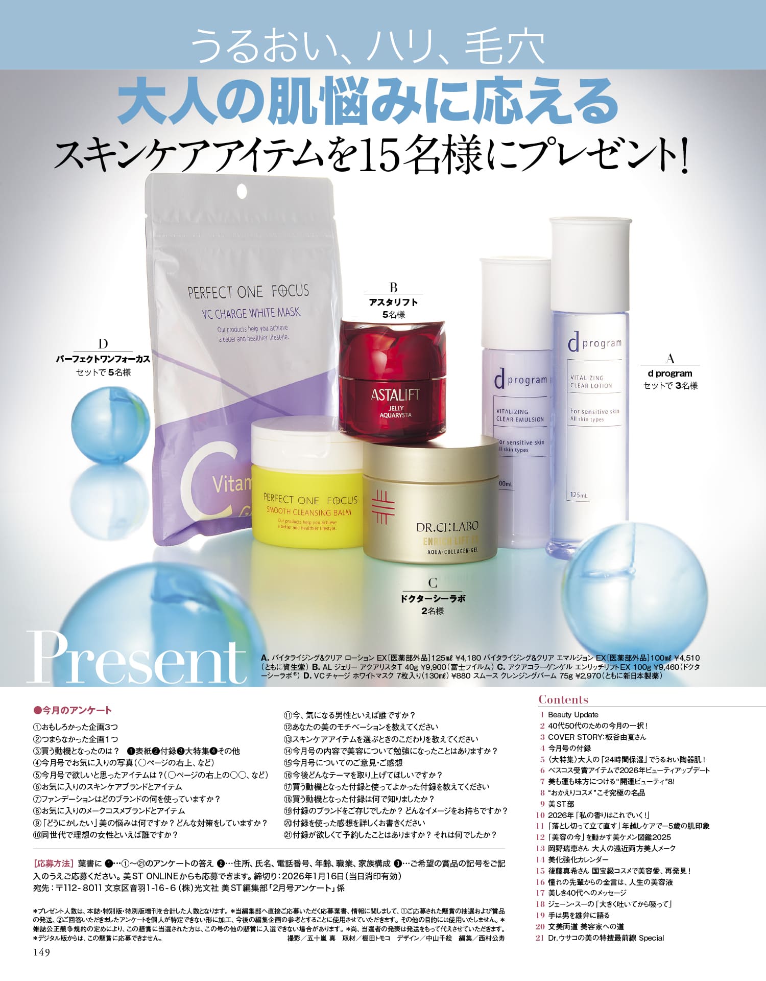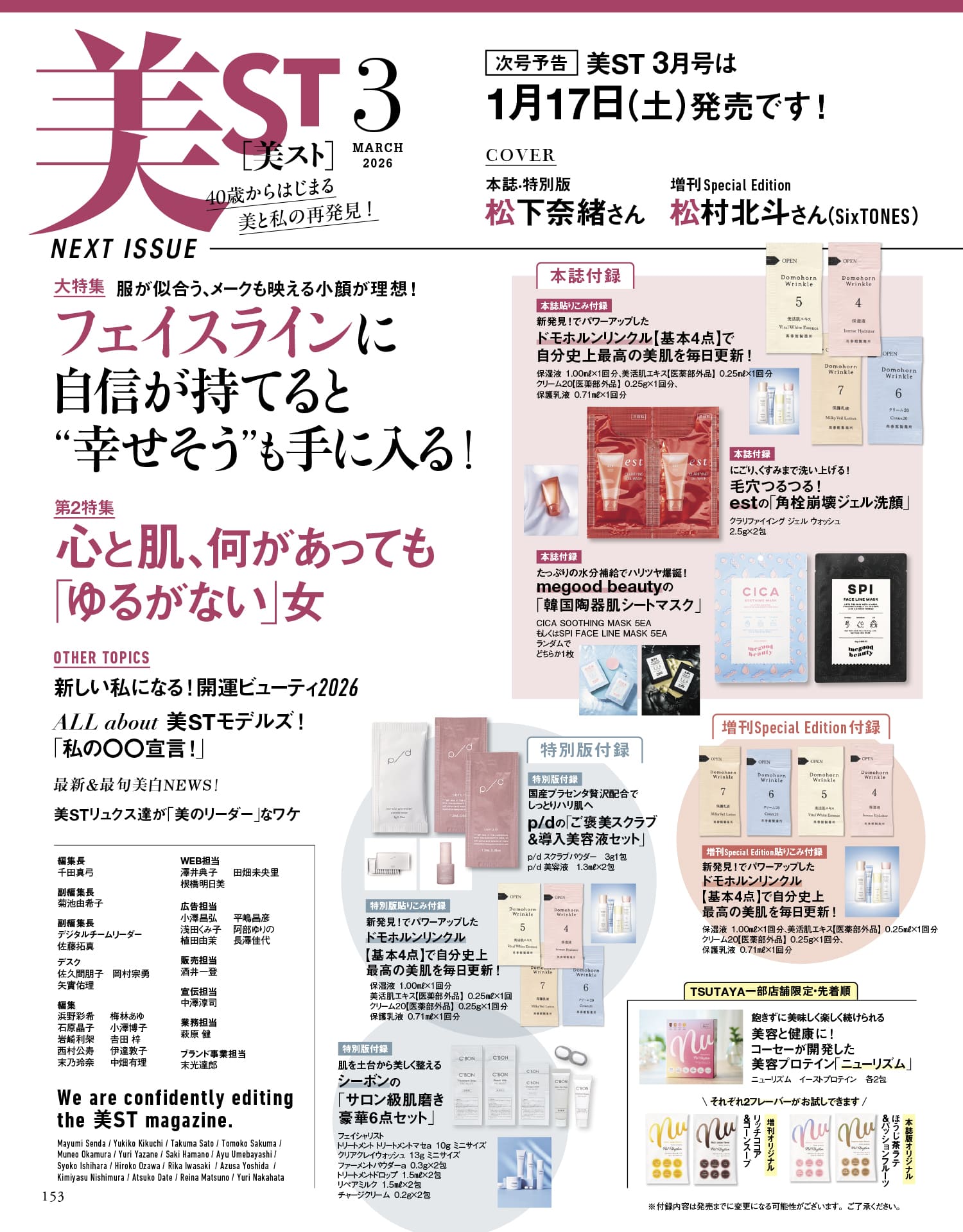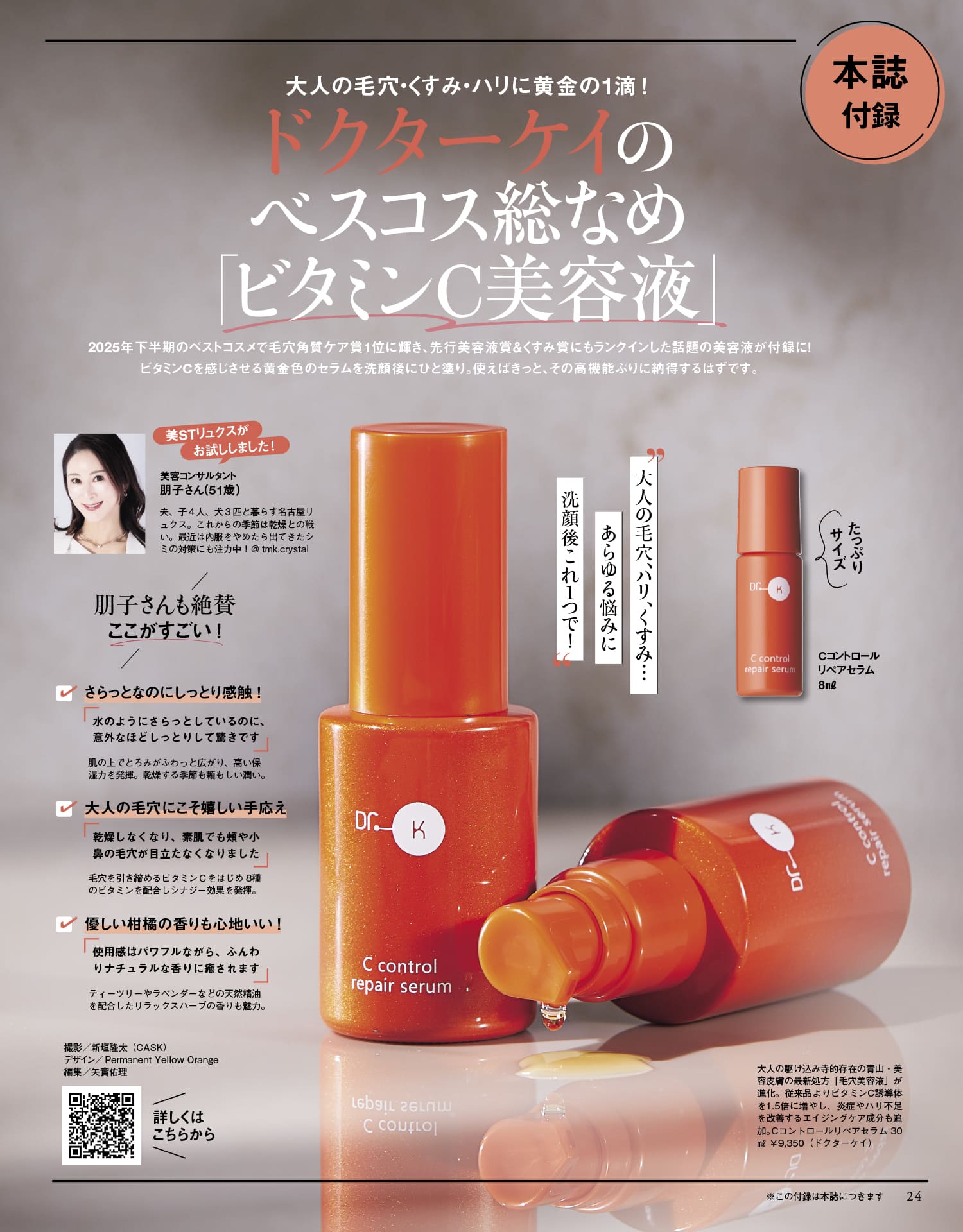 2025年下半期のベストコスメで毛穴角質ケア賞1位に輝き、先行美容液賞&くすみ賞にもランクインした話題の美容液がたっぷりボトルで付録に!従来品よりビタミンC誘導体を1.5倍に増やし、炎症やハリ不足を改善するエイジングケア成分も追加。Cコントロール リペアセラム 8ml ミニボトル