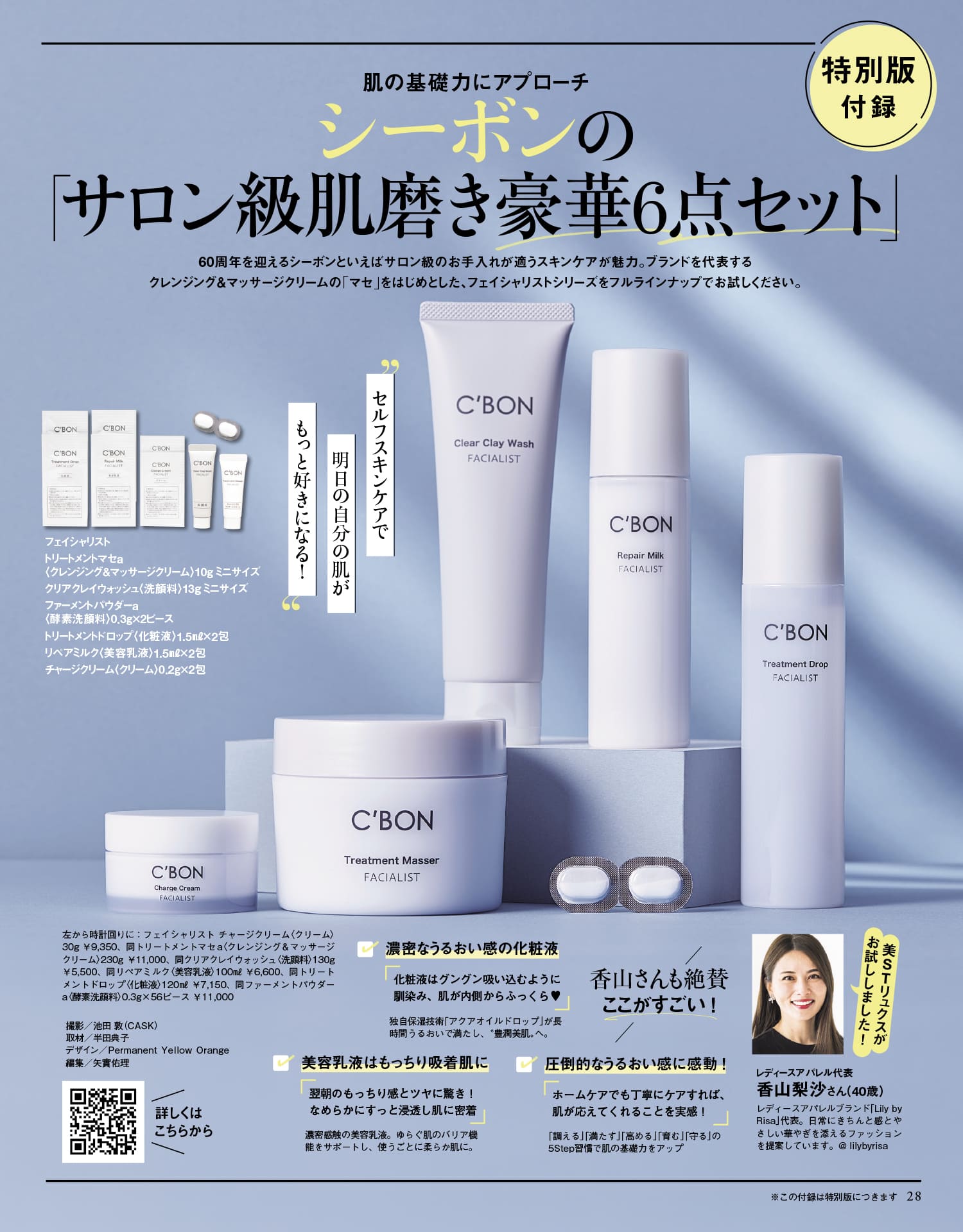 60周年を迎えるシーボンといえばサロン級のお手入れが適うスキンケアが魅力。ブランドを代表するクレンジング&マッサージクリームの「マセ」をはじめとした、フェイシャリストシリーズをフルラインナップでお試しください。フェイシャリスト トリートメントマセa<クレンジング&マッサージクリーム>10gミニサイズ、クリアクレイウォッシュ<洗顔料>13gミニサイズ、ファーメントパウダーa<酵素洗顔料>0.3g×2ピース、トリートメントドロップ<化粧液>1.5ml×2包 リペアミルク<美容乳液>1.5ml×2包 チャージクリーム<クリーム>0.2g×2包