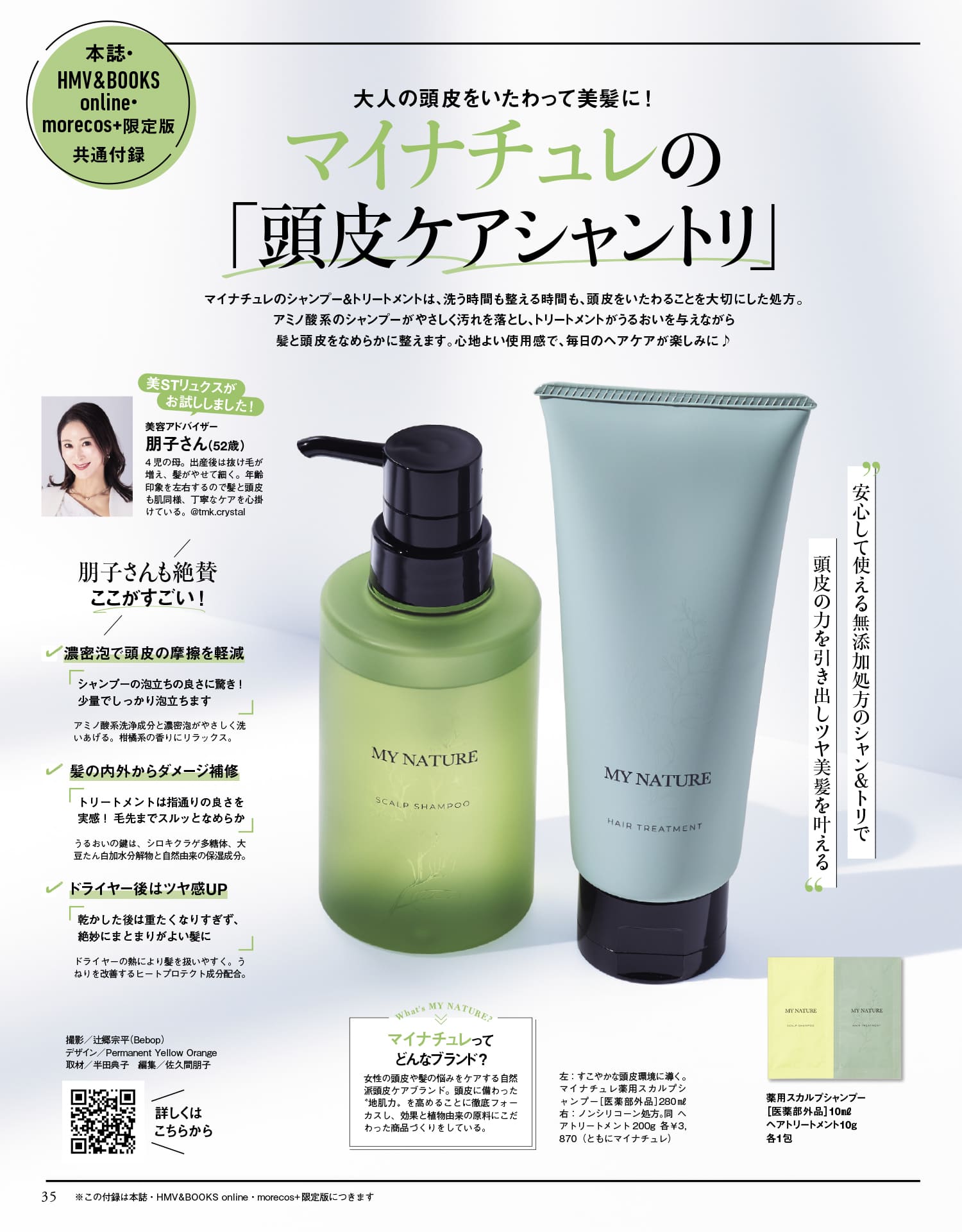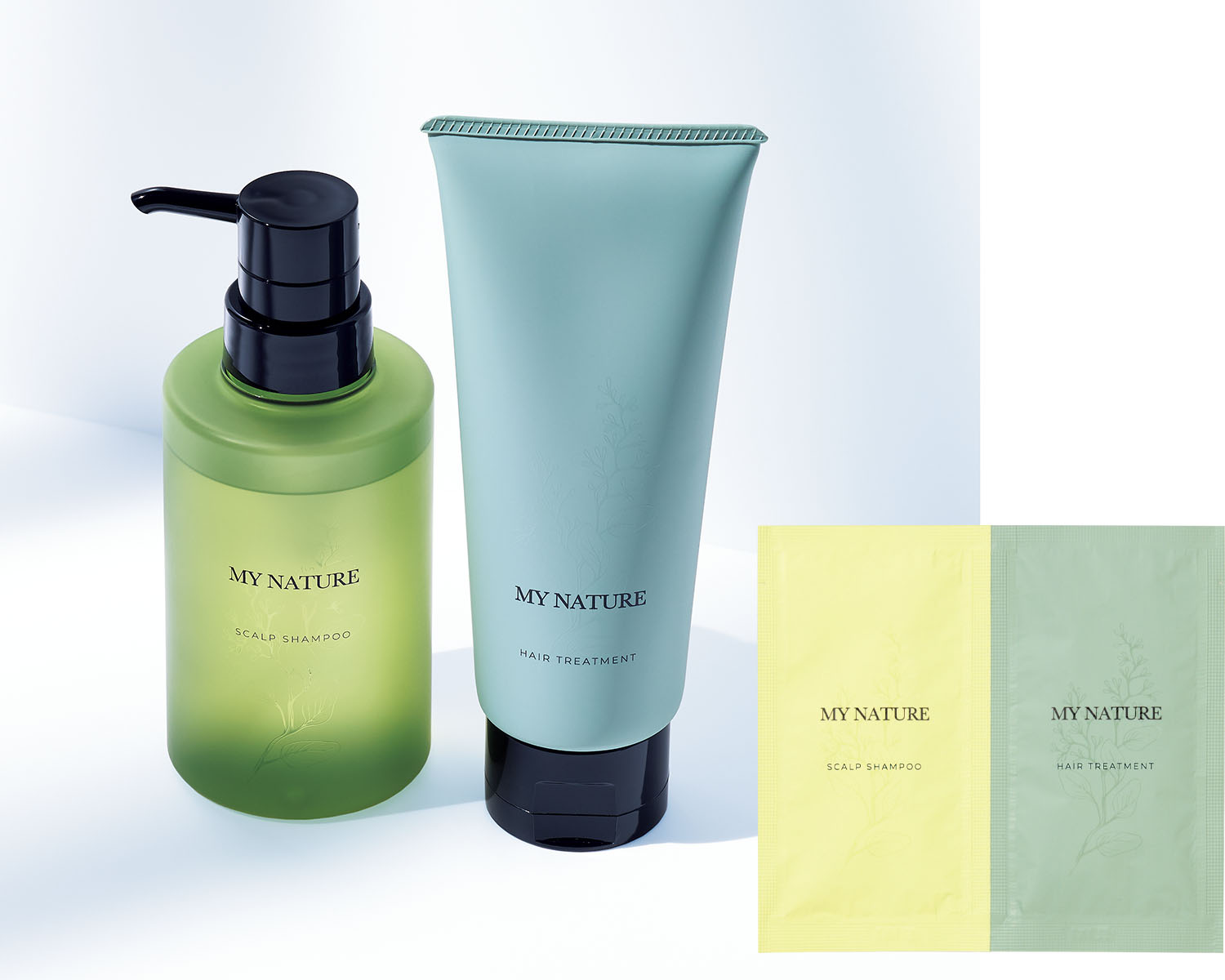 マイナチュレのシャンプー&トリートメントは、洗う時間も整える時間も、頭皮をいたわることを大切にした処方。アミノ酸系のシャンプーがやさしく汚れを落とし、トリートメントがうるおいを与えながら髪と頭皮をなめらかに整えます。薬用スカルプシャンプー[医薬部外品]10ml、ヘアトリートメント10g パウチ各1包