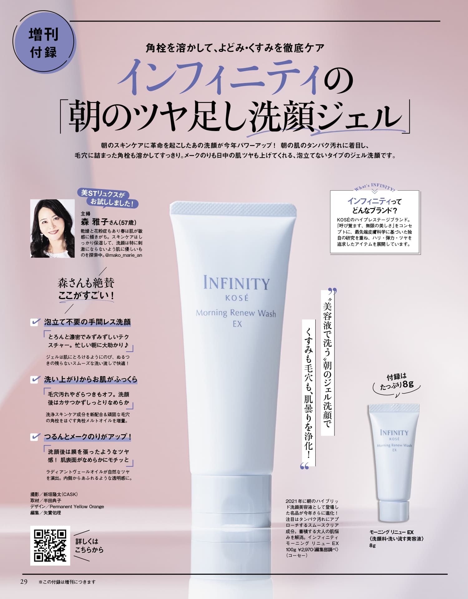 朝のスキンケアに革命を起こしたあの洗顔が今年パワーアップ!朝の肌のタンパク汚れに着目し、毛穴に詰まった角栓も溶かしてすっきり。メークのりも日中の肌ツヤも上げてくれる、泡立てないタイプのジェル洗顔です。モーニング リニュー EX 〈洗顔料・洗い流す美容液〉ミニチューブ 8g
