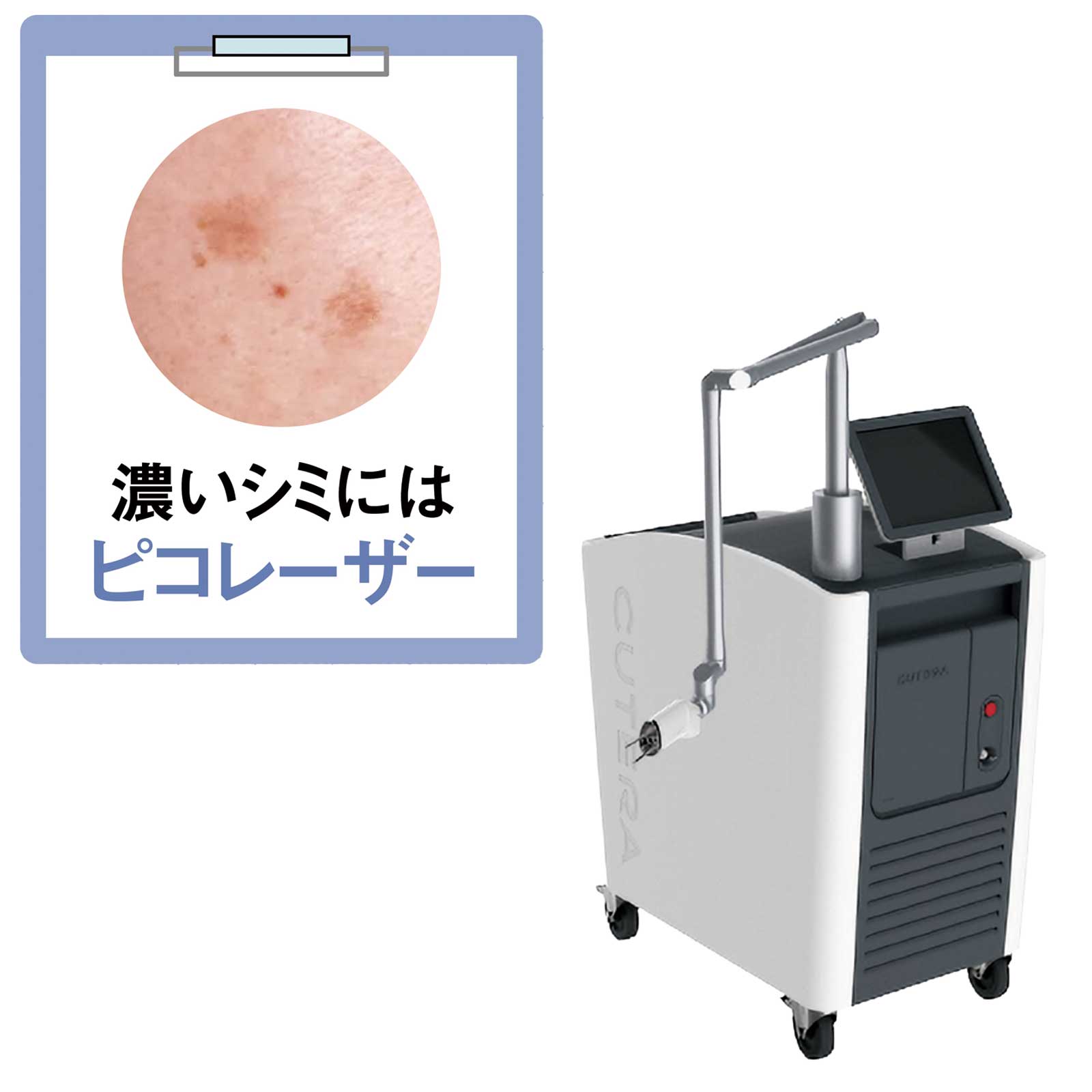 約1兆分の1秒の極めて短い時間で照射するレーザー。色素沈着、ダウンタイムの低減で短時間&低リスクでピンポイントにシミ治療を。5mm以下1回¥10,000前後~(参考:都内クリニック)。