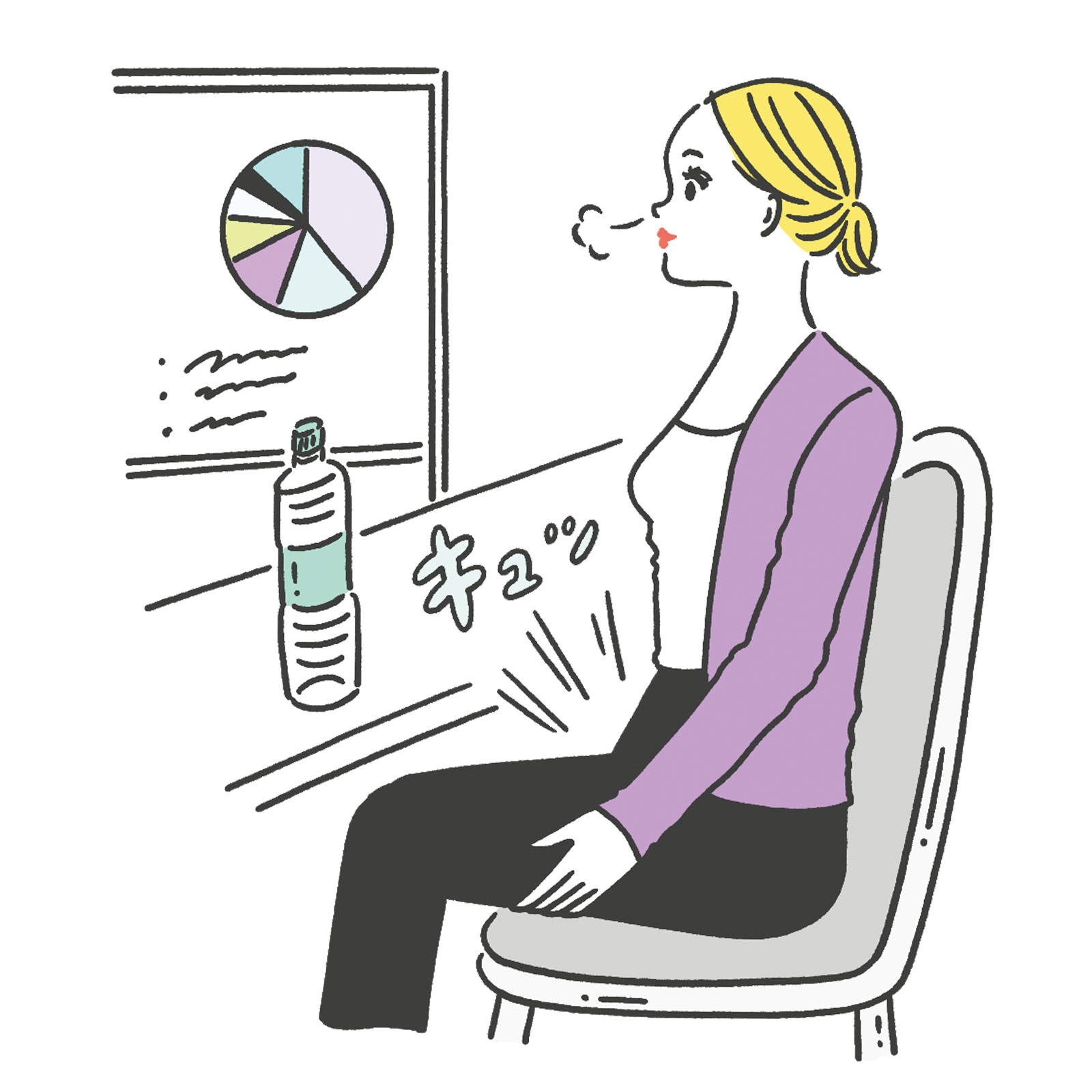 おしっこを途中で止める、肛門をギュッと締めるときに使う筋肉が骨盤底筋。その骨盤底筋を鍛えるケーゲル体操は簡単!例えば背骨のいちばん下にある三角形の骨=仙骨をまっすぐに立てるように腰を起こして姿勢よく座り、肛門・腟・尿道をギュッと締めて3秒キープしたら10秒リラックス。それを10回繰り返します。