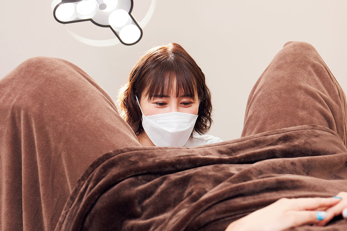 クスコという医療器具を腟に挿入し、腟粘膜の潤いやふかふかさの程度も産婦人科医の視診と内診でしっかり観察。腟の粘膜が健康かどうかも見ています。