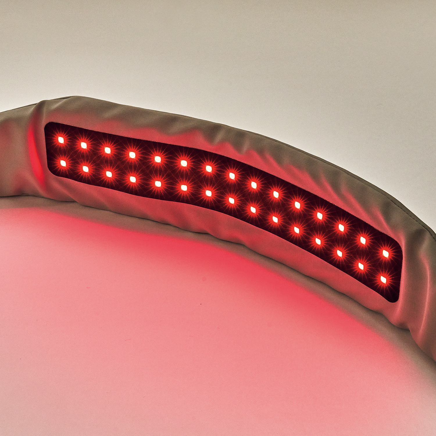 巻くだけで簡単、注目の光温熱ケアで疲れない日常を!可視光線で真皮層までケアすると同時に、850nmの近赤外線が深部までアプローチ。血流を促進し肩や首のこりをほぐします。
