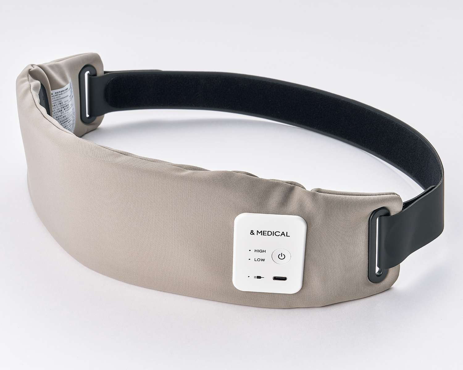 サイズ:W500×D100×H10㎜(本体)、820×40㎜(固定ベルト) 重量:168g 最高到達温度:45℃(LOW)、60℃(HIGH) 附属品:専用ACアダプター、USBケーブル 特徴:ベルトは面ファスナーで着脱も簡単。ウエスト周り90㎝まで対応。