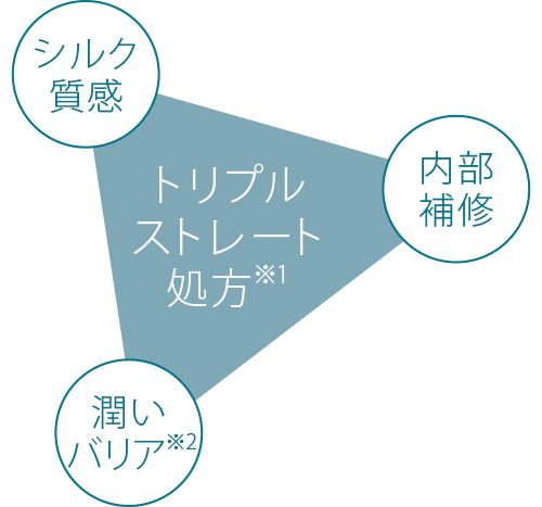 髪の主成分アミノ酸※5と補修成分ジマレイン酸※6を配合し、髪内部にアプローチ。さらにトステア®※7が髪の芯からサポートし、強さを引き出す。