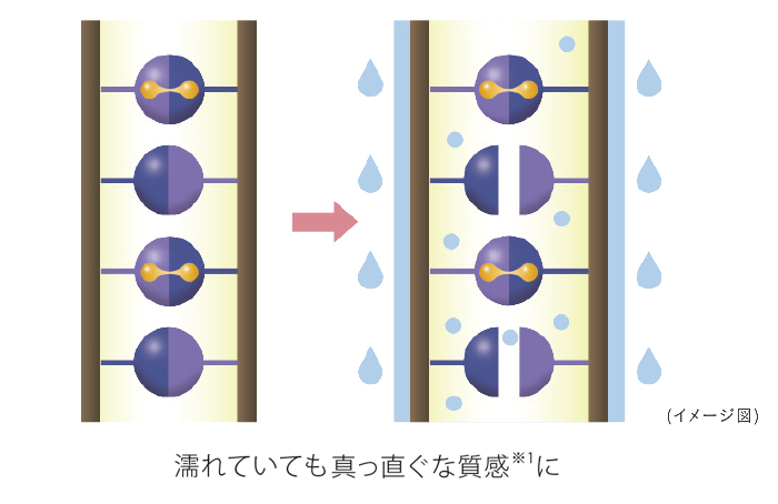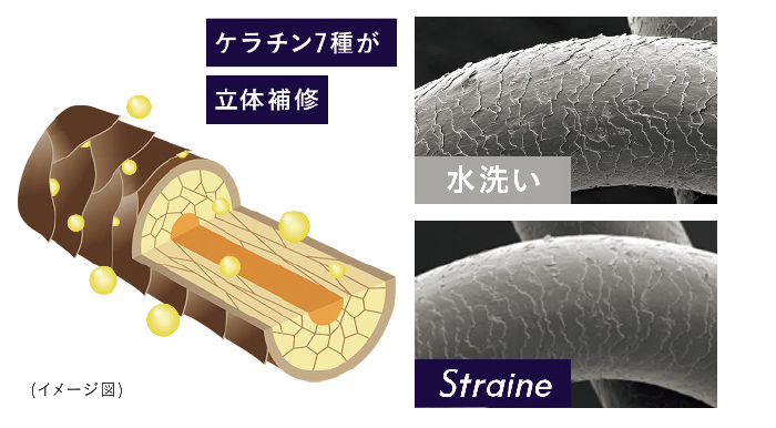 質感をなめらかにしながら洗浄するPPT系※3の洗浄成分と分子サイズの異なる7つのケラチン※4の補修効果でなめらかな手ざわりに。