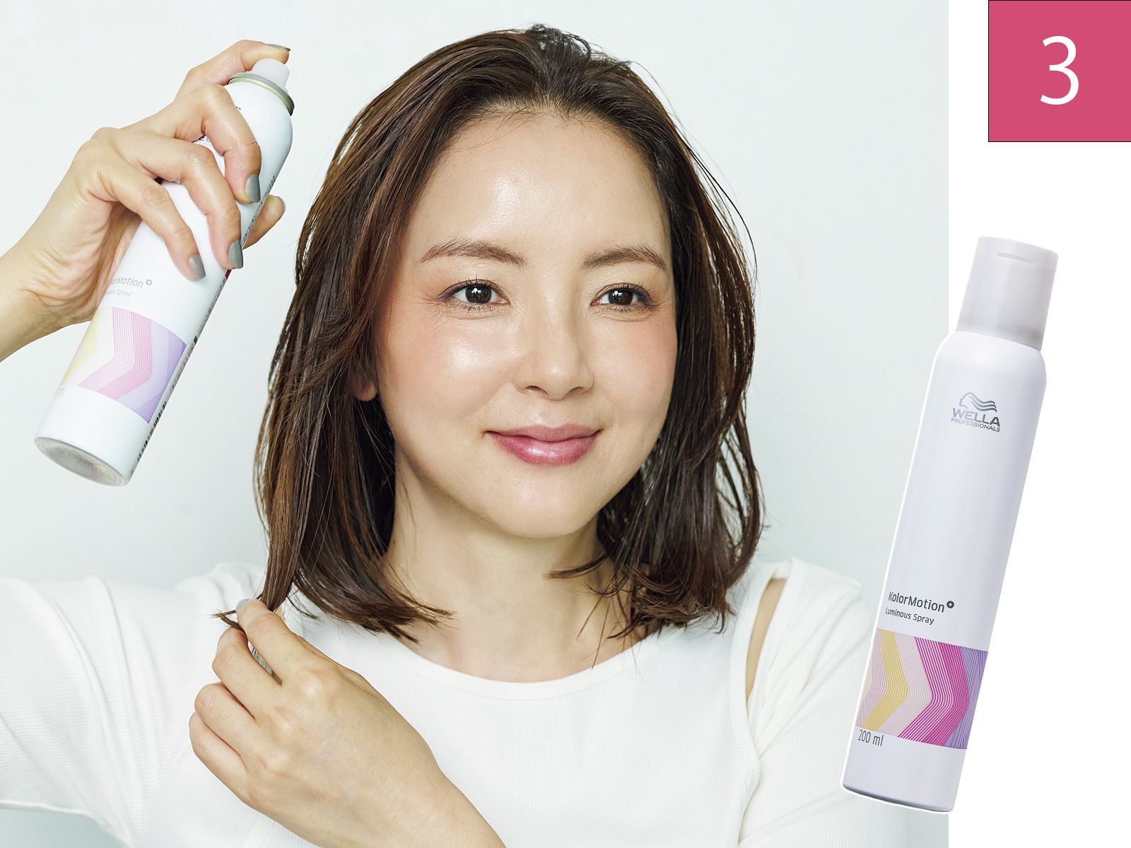 カラーをした髪を紫外線や熱、湿気、摩擦などから守るオイルスプレー。カラーモーション + ルミナススプレー 200ml ¥1,980(ウエラ プロフェッショナル)