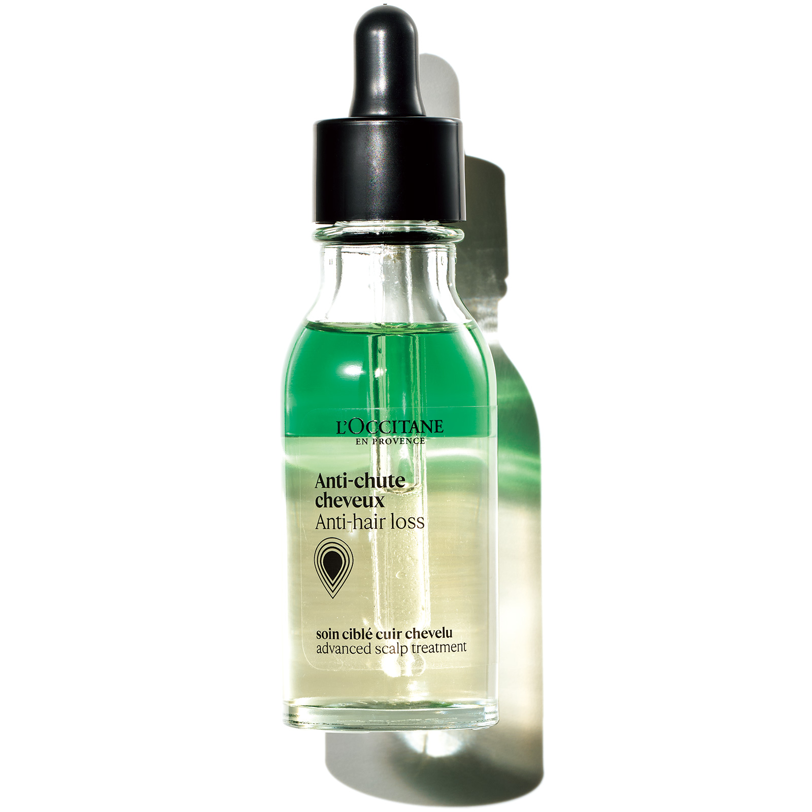美しい2層セラムは、オイル層に抗酸化作用の高いビタミンE、ウォーター層に血行促進効果のあるセンブリエキスと皮膚の保湿効果があるリコリス由来成分を配合。しっかり振って混ぜて塗布して。薬用 メディカル アンチヘアロスセラム [医薬部外品]50ml ¥6,160(ロクシタンジャポン)