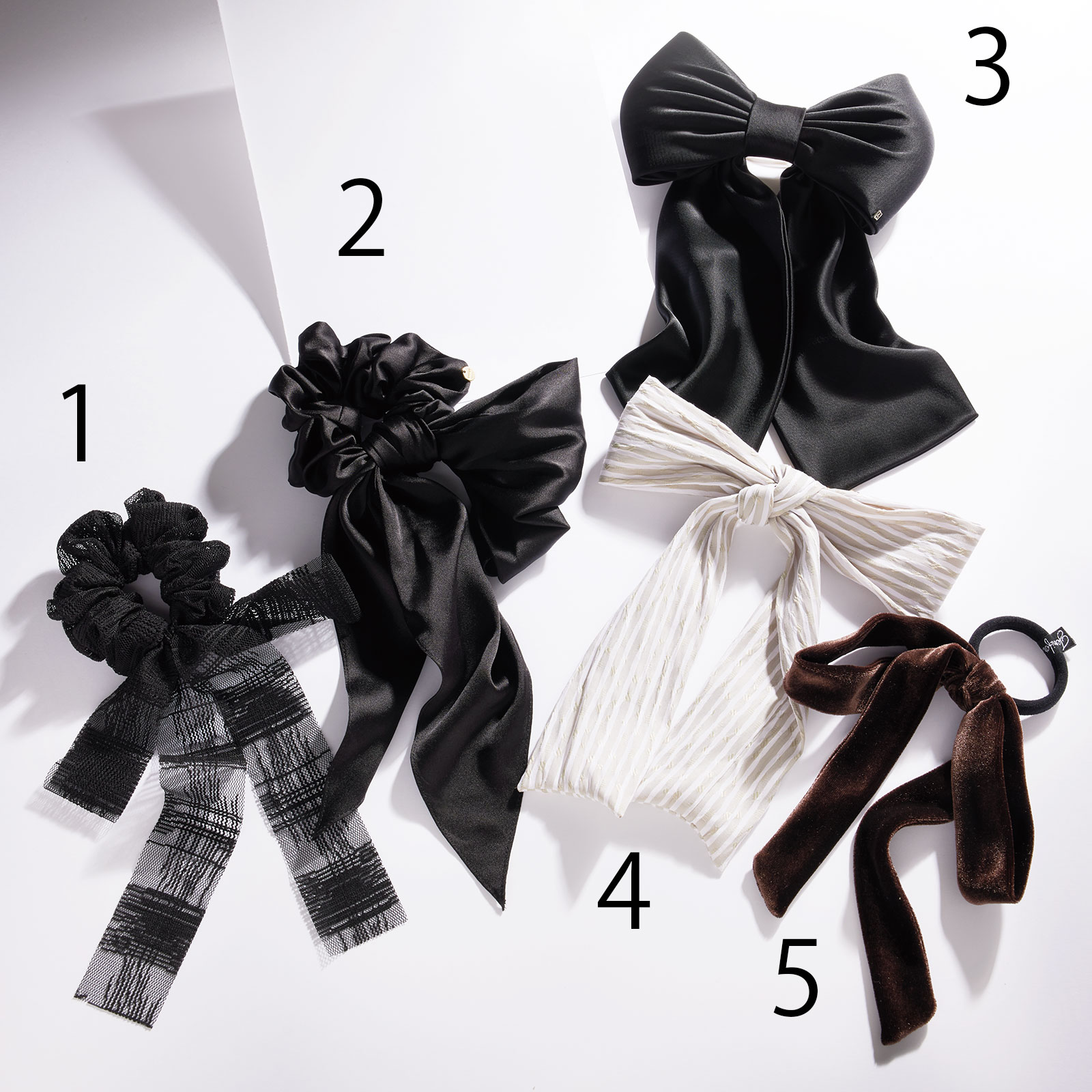 5.ベルベット素材のリボンは、デイリーに使いやすいサイズ感。ゴム[全長20×横18cm]¥12,100(ジェニファー オーレット/ユナイテッドアローズ 渋⾕スクランブルスクエア店)
