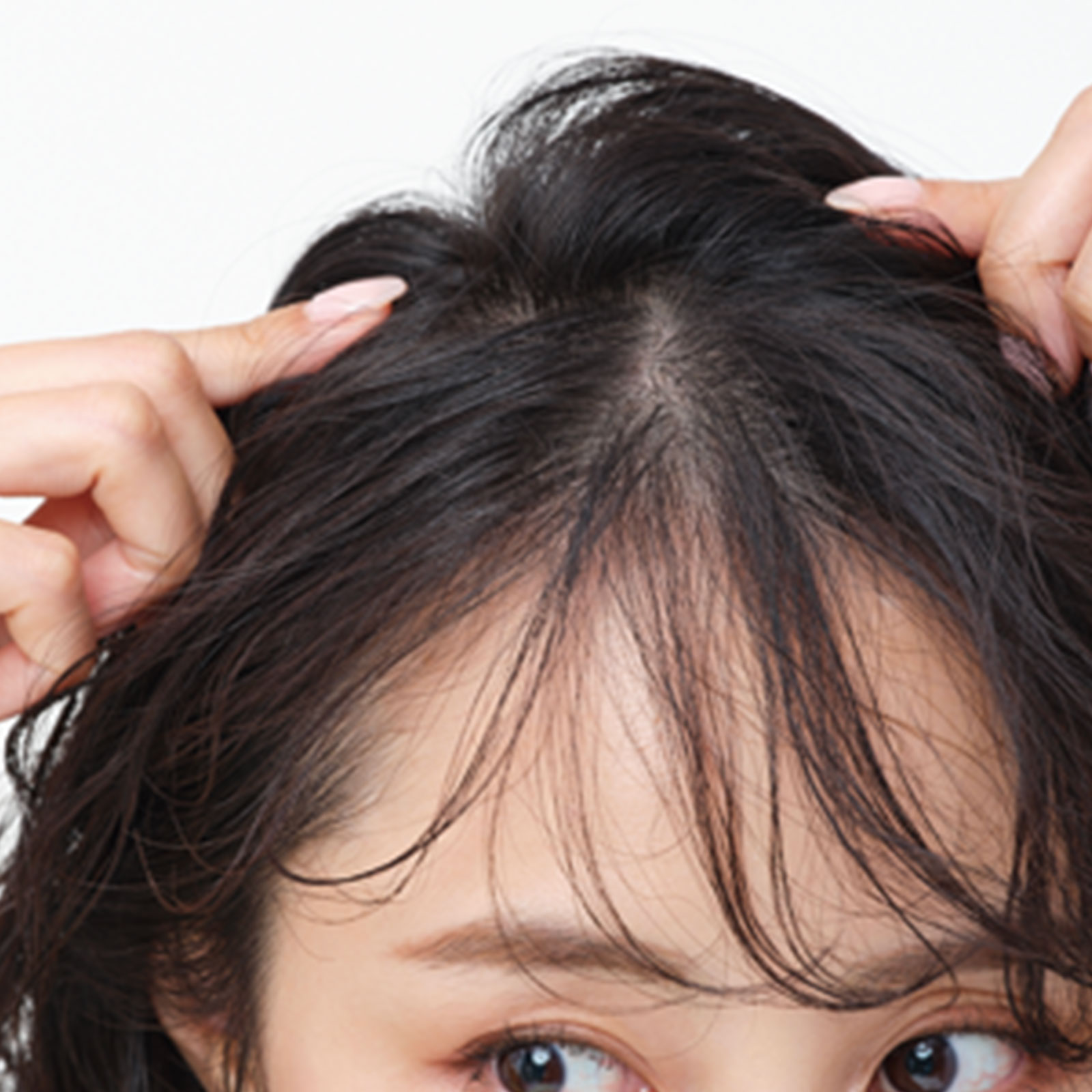 2.ピンを留める側の耳の付け根と頭頂部を結ぶ線をブロッキング。