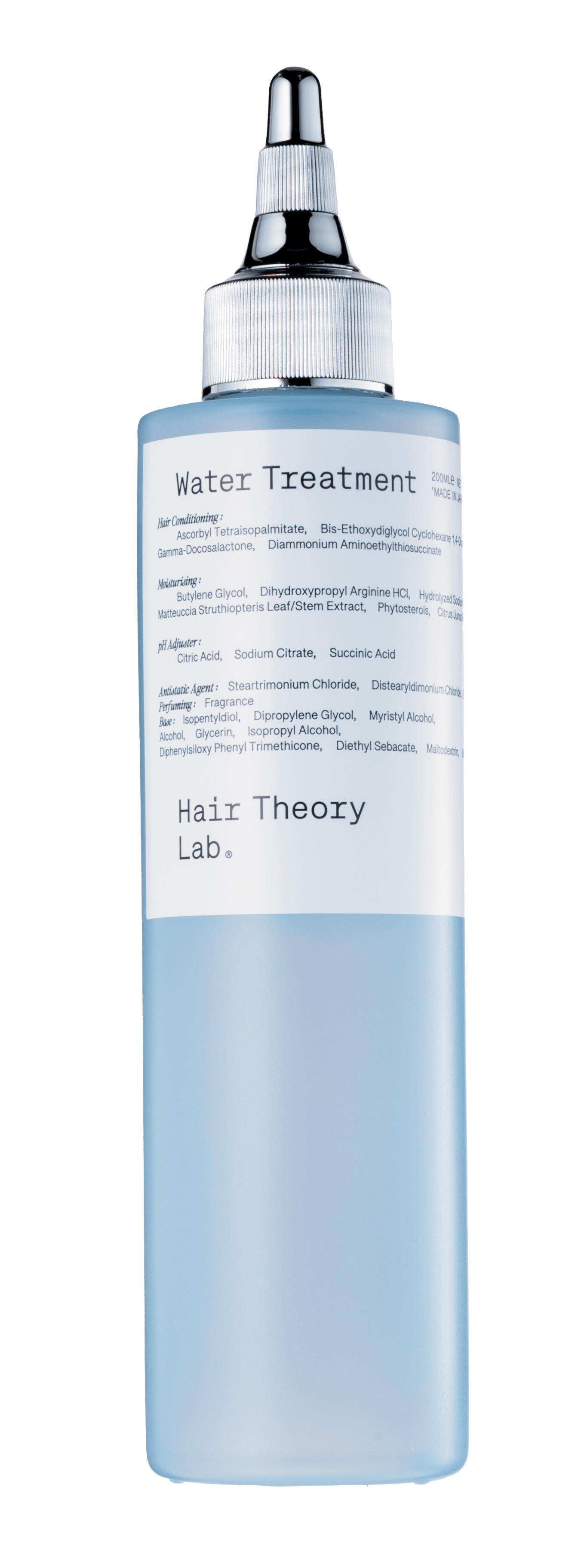 「塗布した瞬間に温感トリートメント。気になる髪のうねりを素直にしてくれる頼もしいアイテムです!/矢實佑理 (美STデスク)」。トステア®をはじ め、6種類の毛髪補修成分を配合し、うねりケアと極上の指通りを叶えるプレトリートメ ント。 200㎖ ¥4,400(Hair Theory LabR)