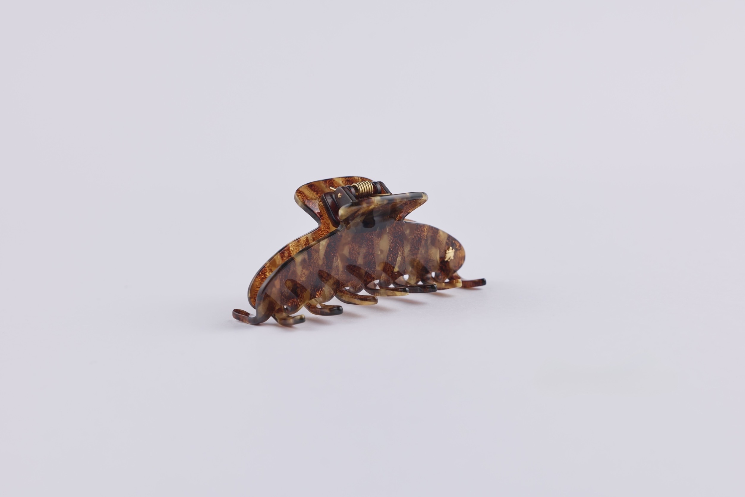 髪によくなじむブラウンのマーブル模様は、どんなシーンでも活躍!ブラウンクリップ¥11,000(Turtle Story/ザ ヘア バー トウキョウ)