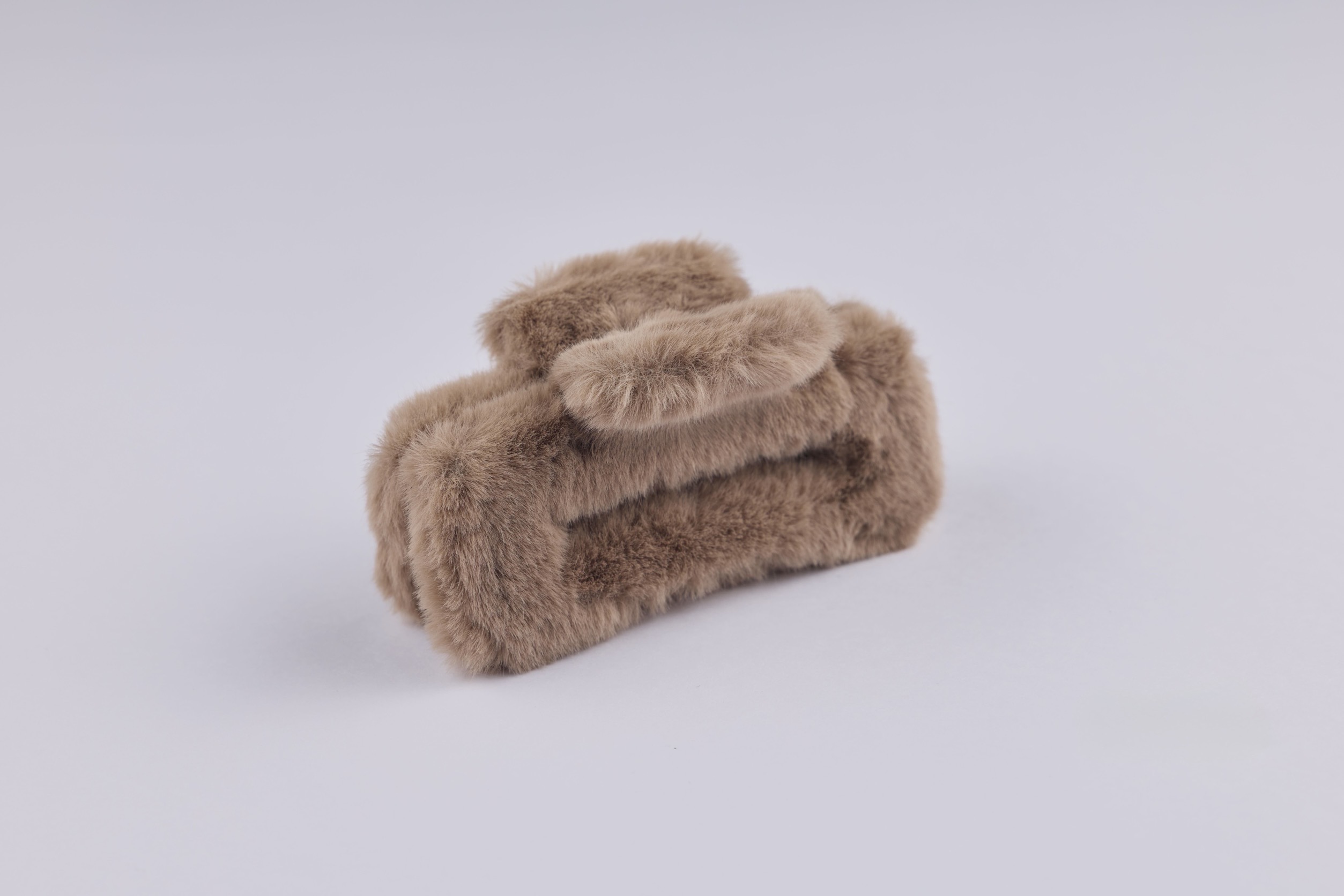 つけるだけで髪のボリュームがアップして見える、大振りのクリップにふわふわファーがあしらわれたデザイン。ファークリップ¥1,430(MUK TEL054-203-4000)