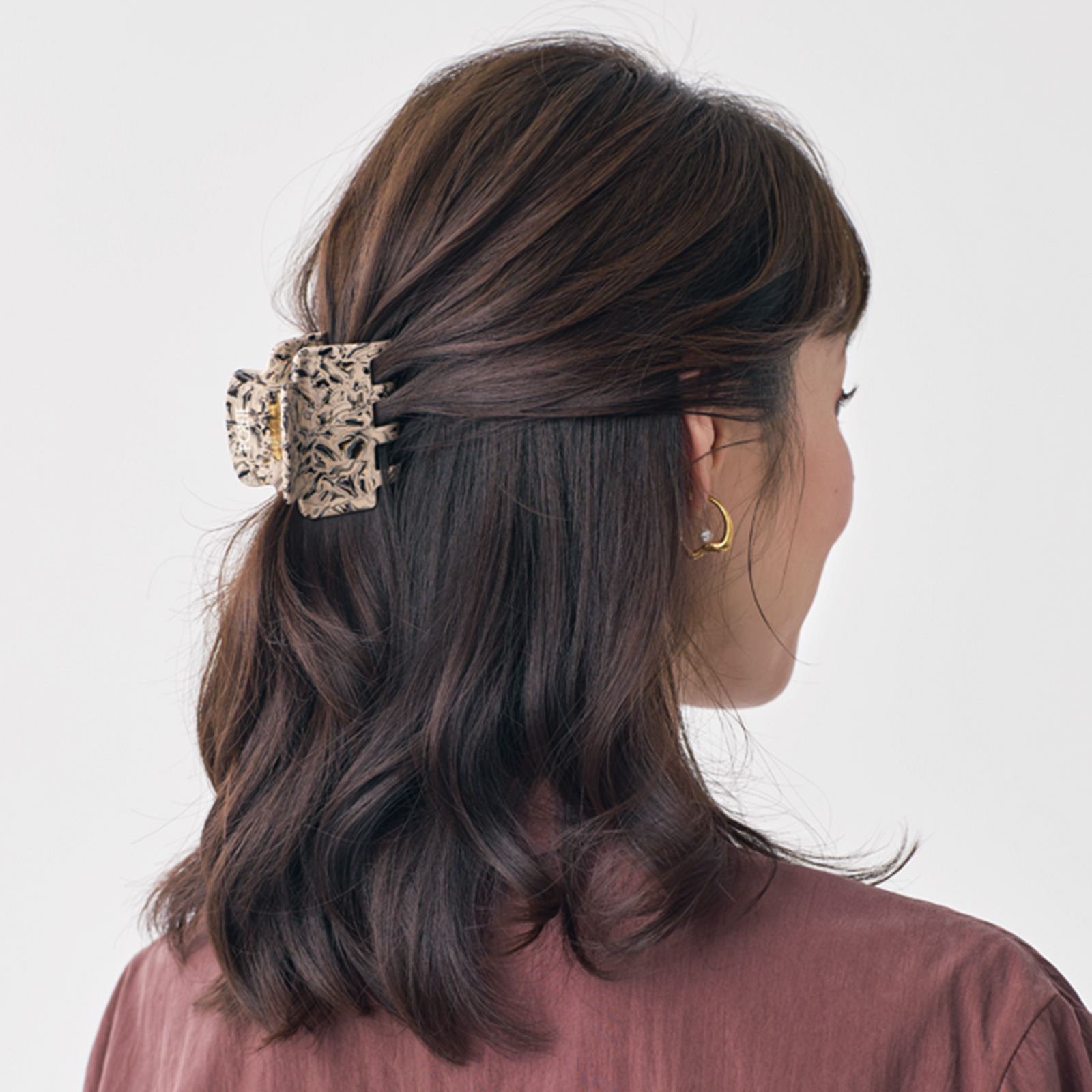 どんな服とも相性がいいベージュ系のマーブル模様。クリップ¥2,420(POTETE)