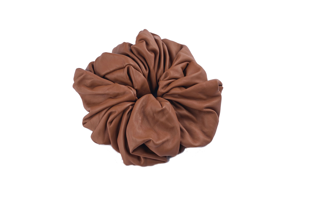 髪が短くて小さいシニヨンしか作れない人は、これくらい大き目をつけるとバランスがとれる!ビーガンレザービッグシュシュ¥5,390(POTETE)