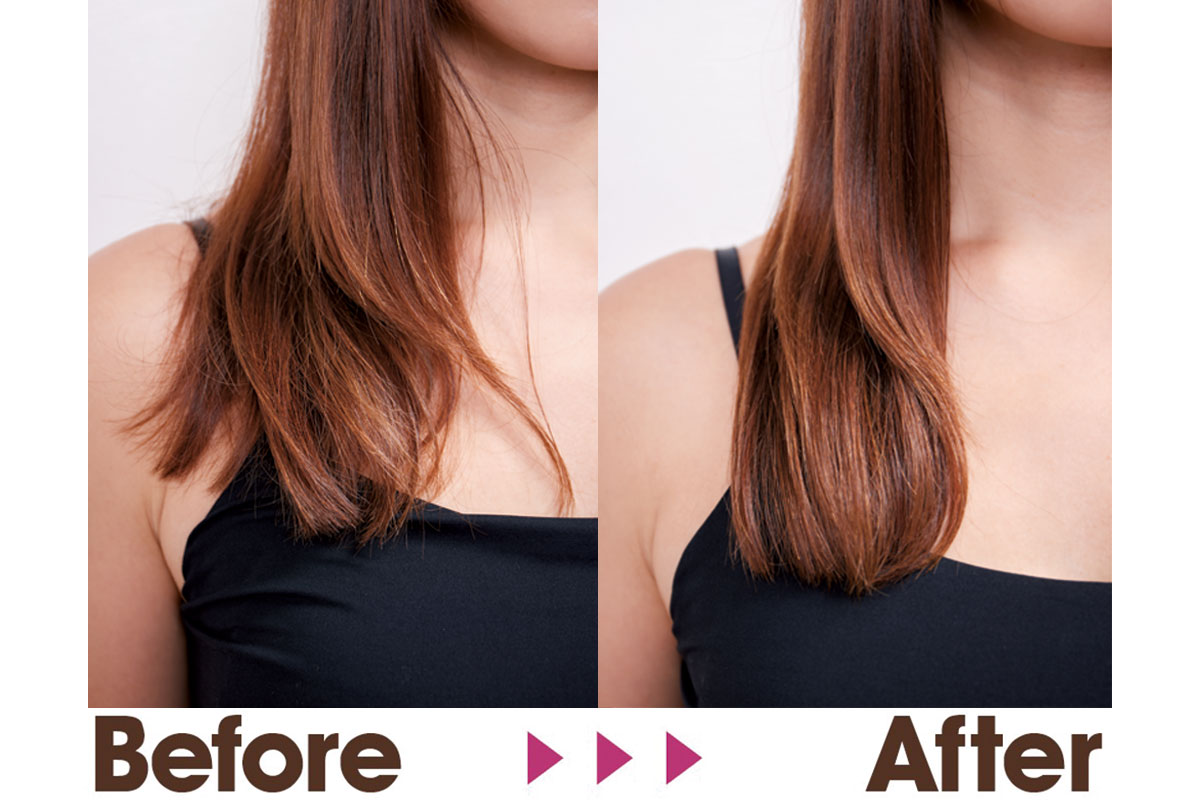 3〜4プッシュほどを出し、手のひらで馴染ませたら、毛先を中心に髪全体に塗布。するん!とまとまります。