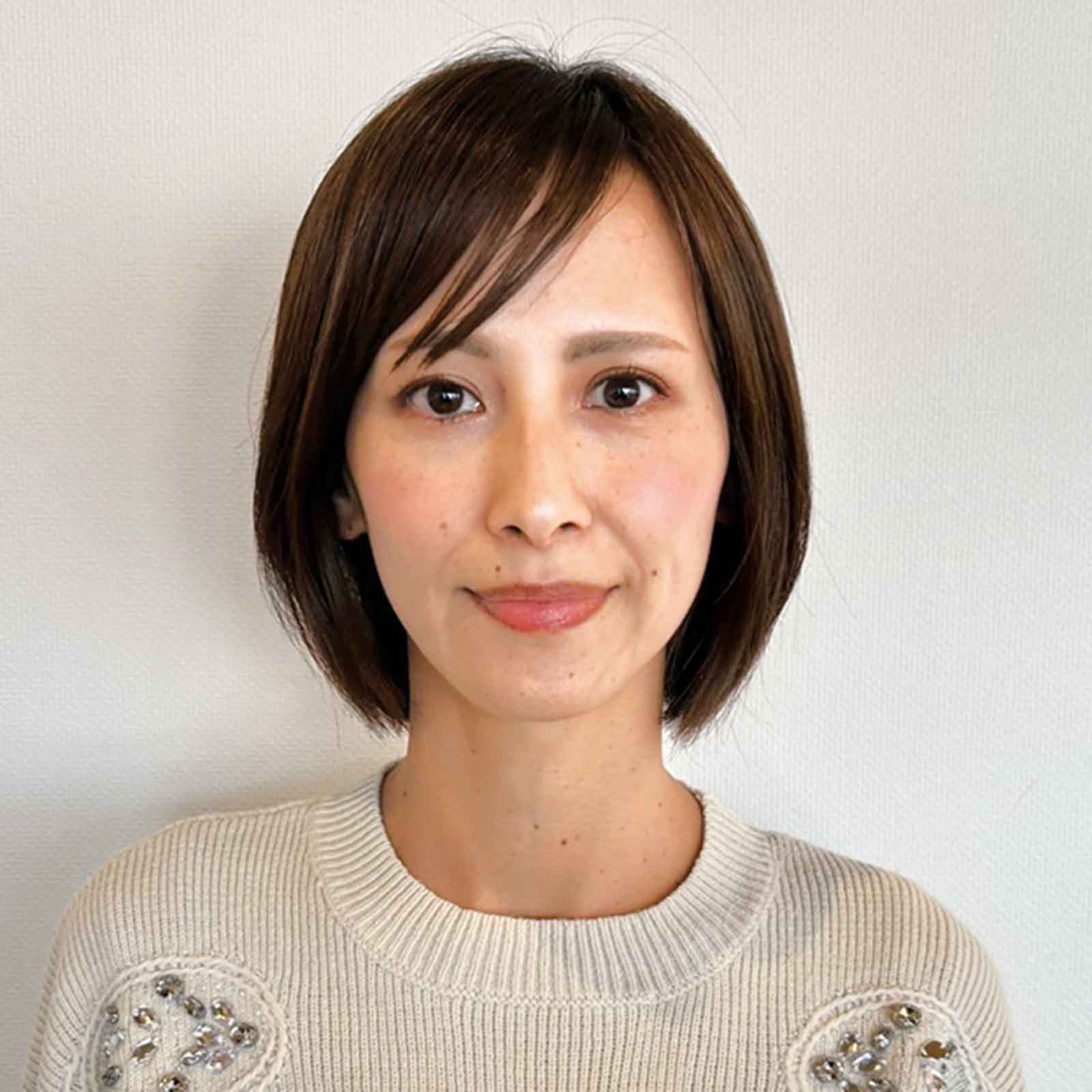 頭頂部からミドルゾーンまでしっかりレイヤーを入れ、トップが重くペタっとなるボブを軽やかに。太め38mmのコテで外ハネにすればくびれ、内巻き時は丸く表面に流れが。全体にストロークカットで動きにメリハリを。顔周りは頰骨付近に落ちるようレイヤーを入れると今っぽい。