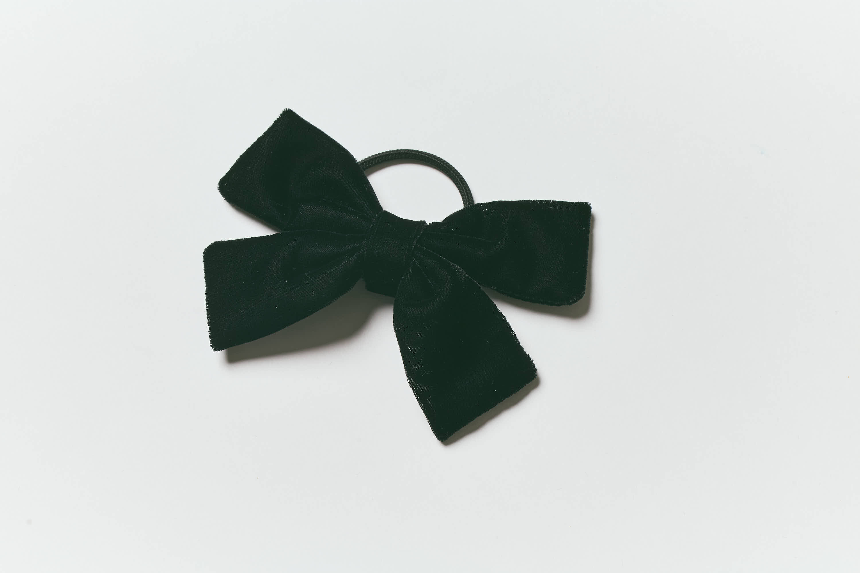 張りのあるリボンなので、低めひとつ結びに合わせて正面から少しリボンを見せると、疲れた顔が一気に華やぎます!ベロアリボンヘアゴム¥7,150(IRIS47/フーブス)