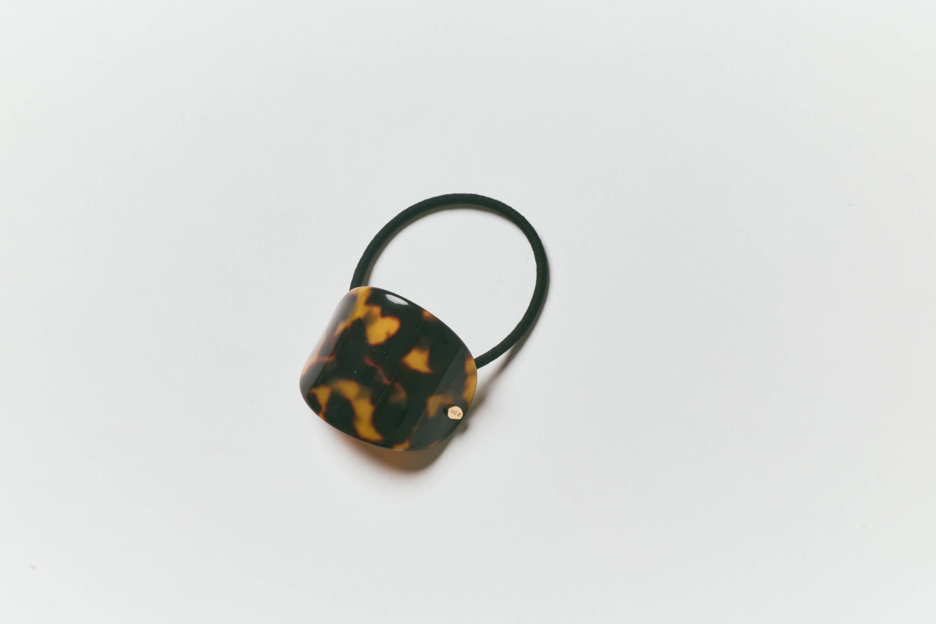 髪となじみのいいべっ甲モチーフのヘアカフス。結んだ根元が隠れるので、ゴム隠しができない髪の短い人におすすめ。ブラウンヘアゴム¥8,800(IRIS47/フーブス)