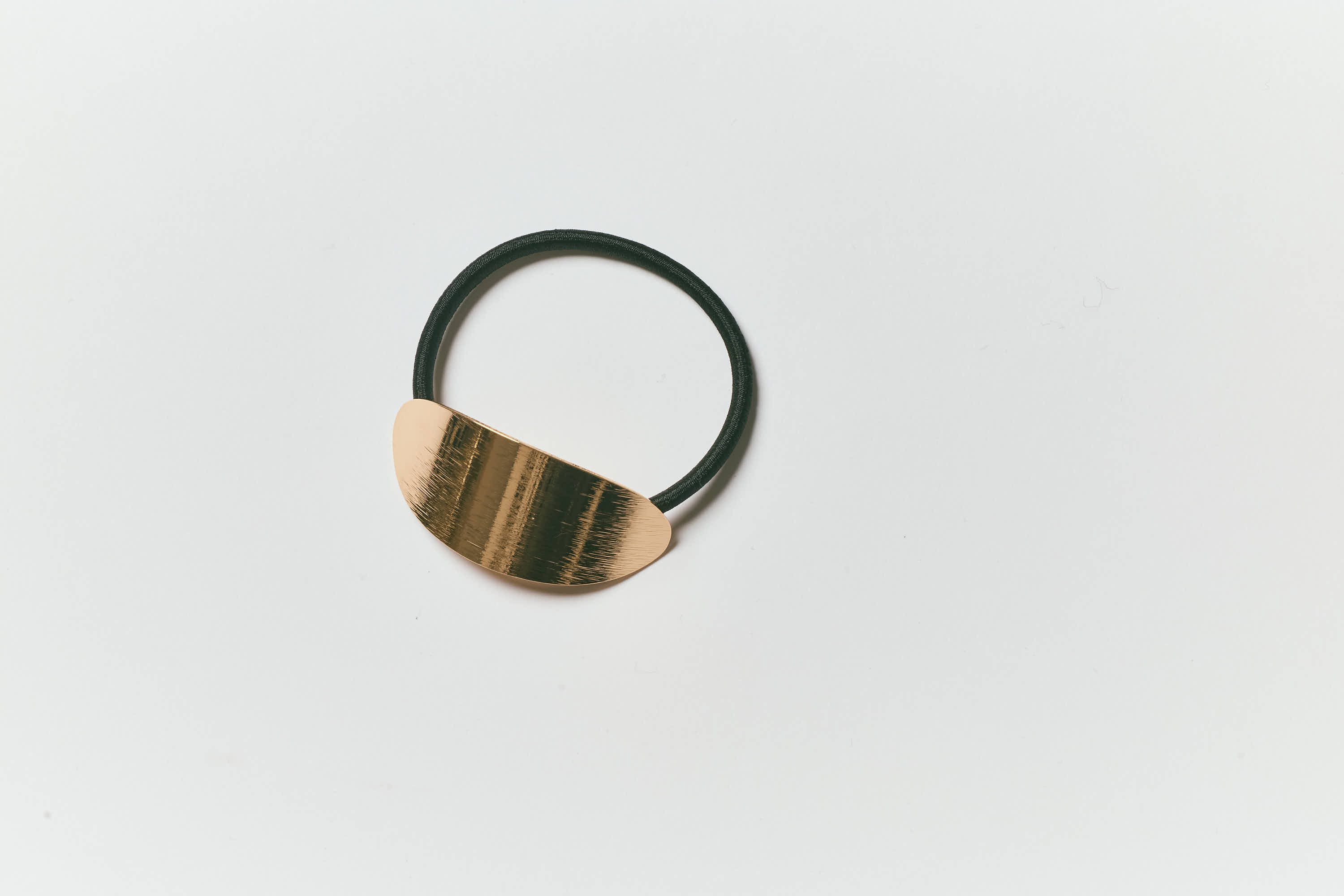 オーバル型のゴールドの金具が、痩せてきた毛束をオシャレにカバーしてくれます。ゴールドヘアゴム¥880(MUK)
