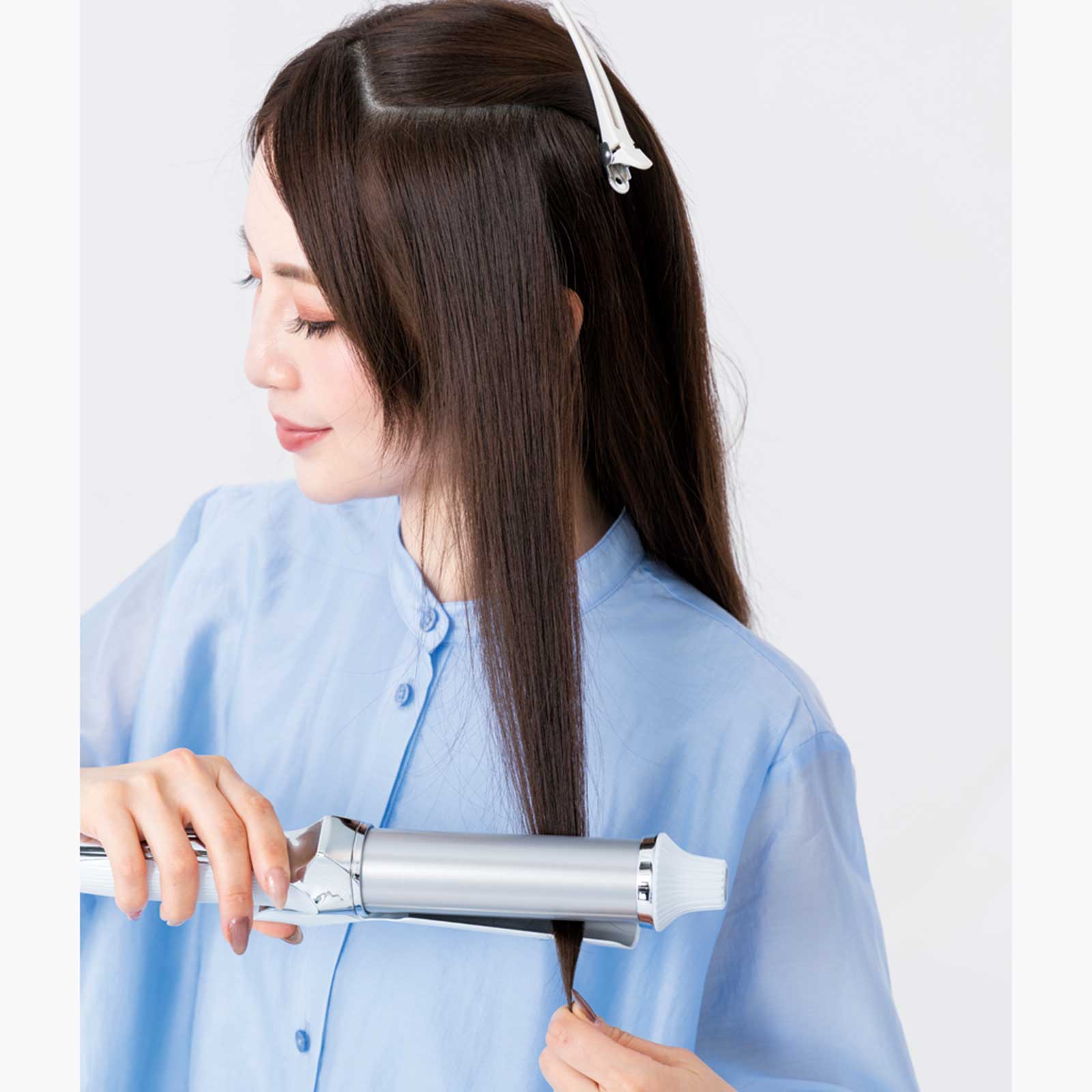 フリッパーで髪を挟んだまま、ゆっくり毛先までスライドします。