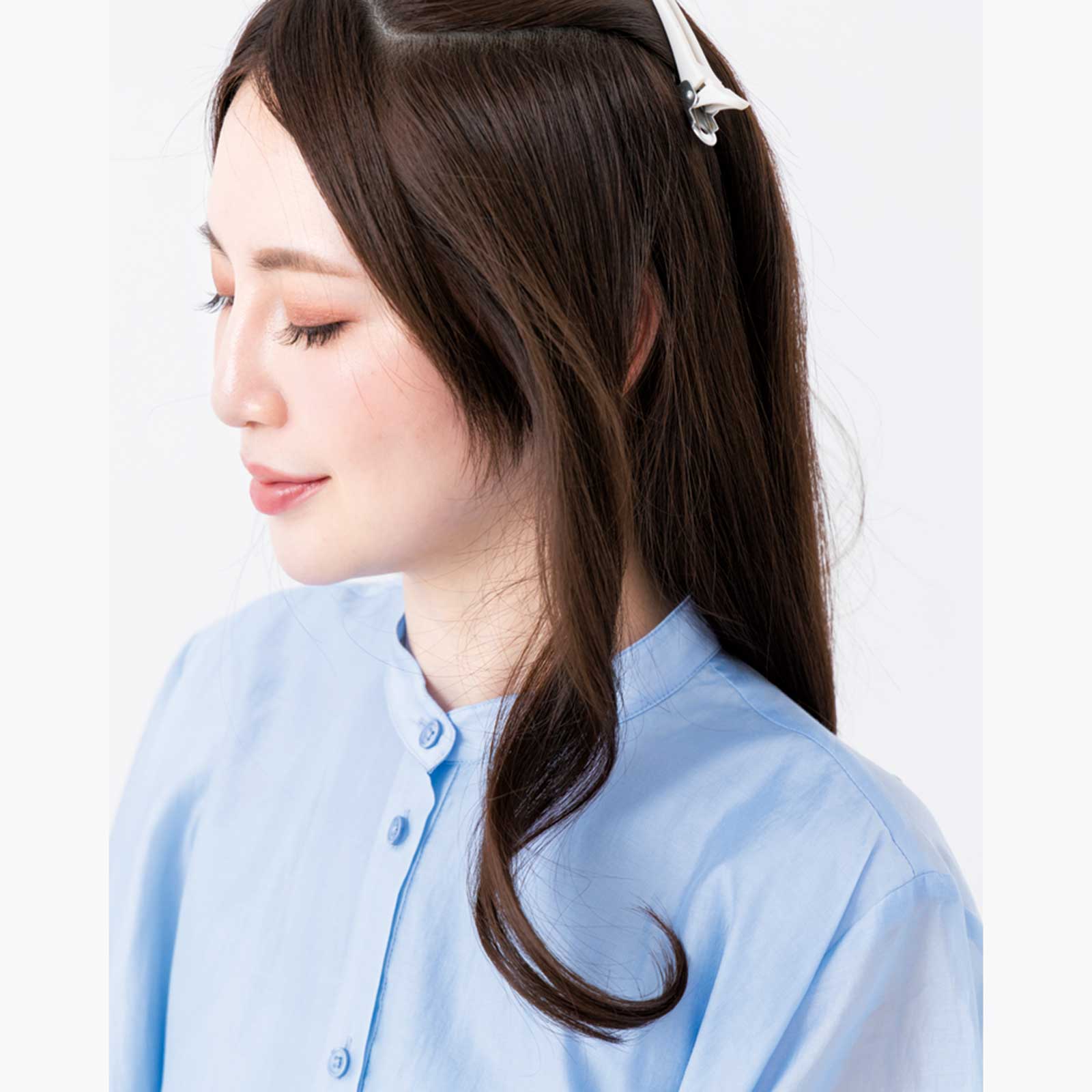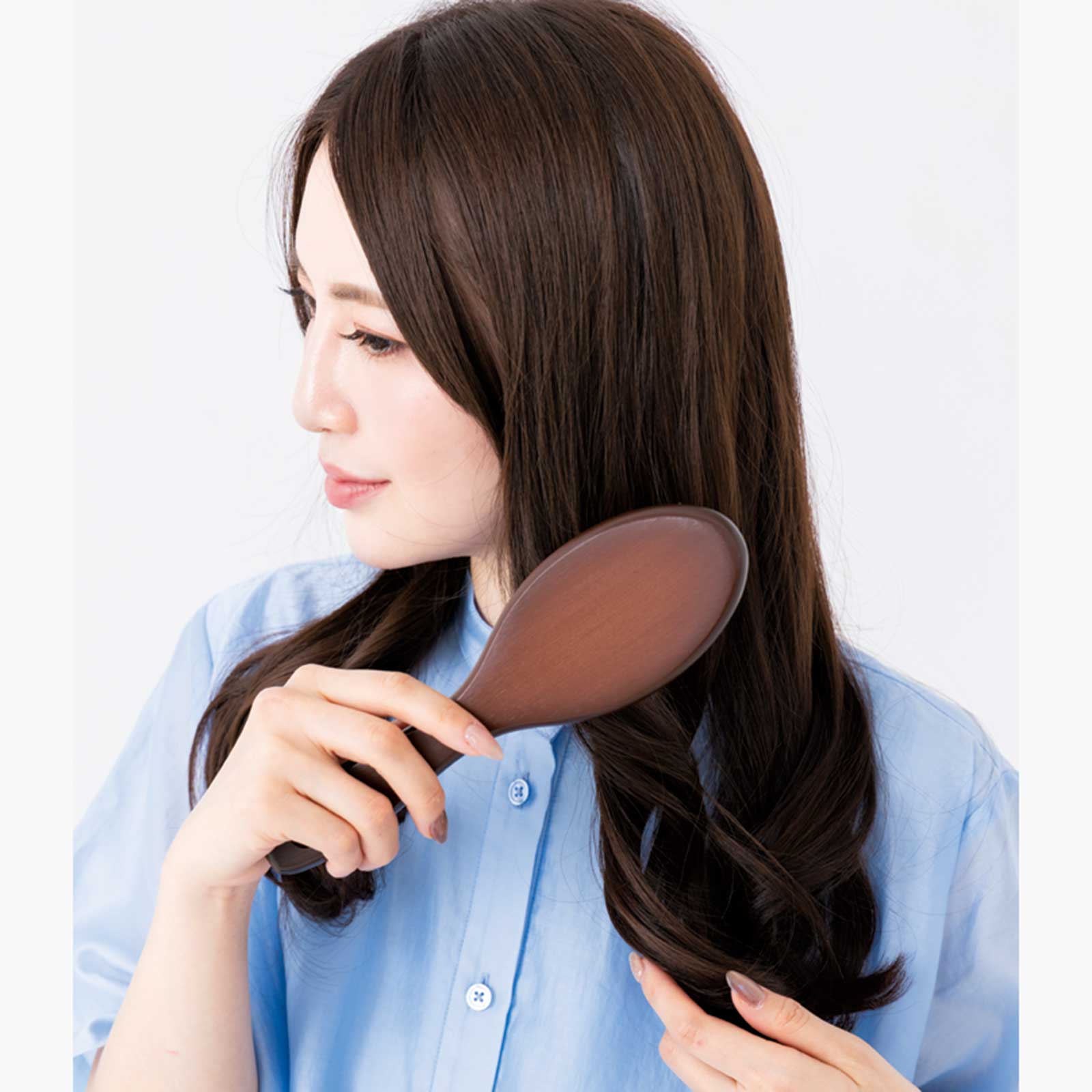ブラシで根元から毛先までしっかりとかしてツヤを出します。