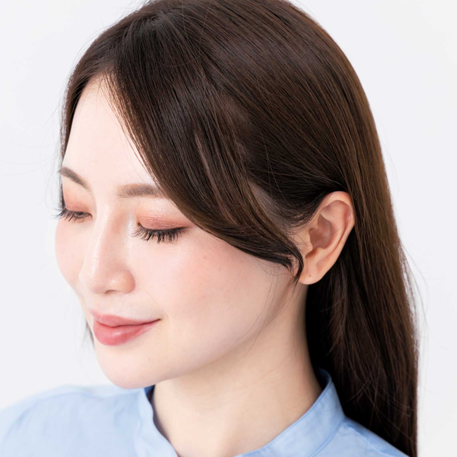 目の横からカールして、毛先が流れるように後ろに向かう巻きに。