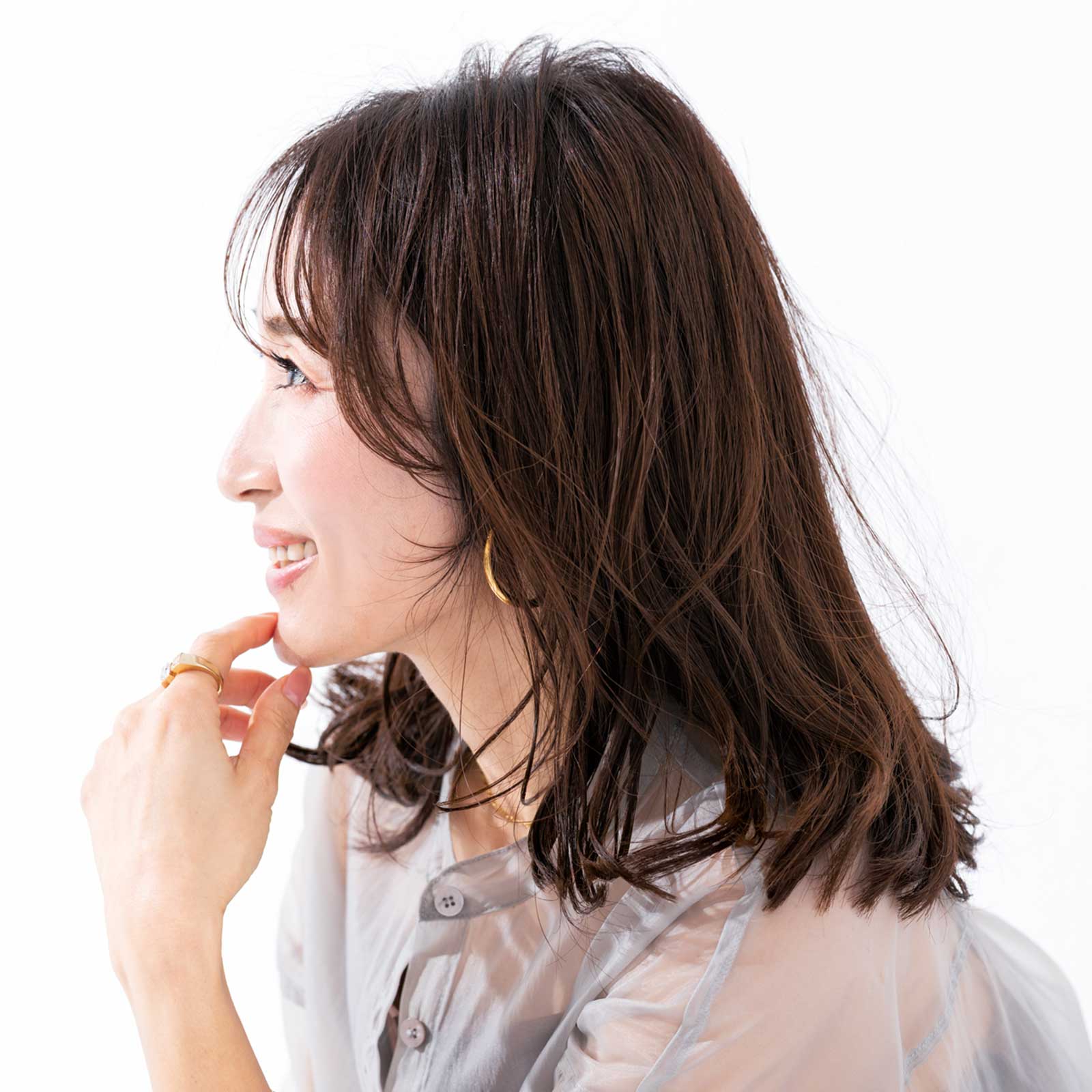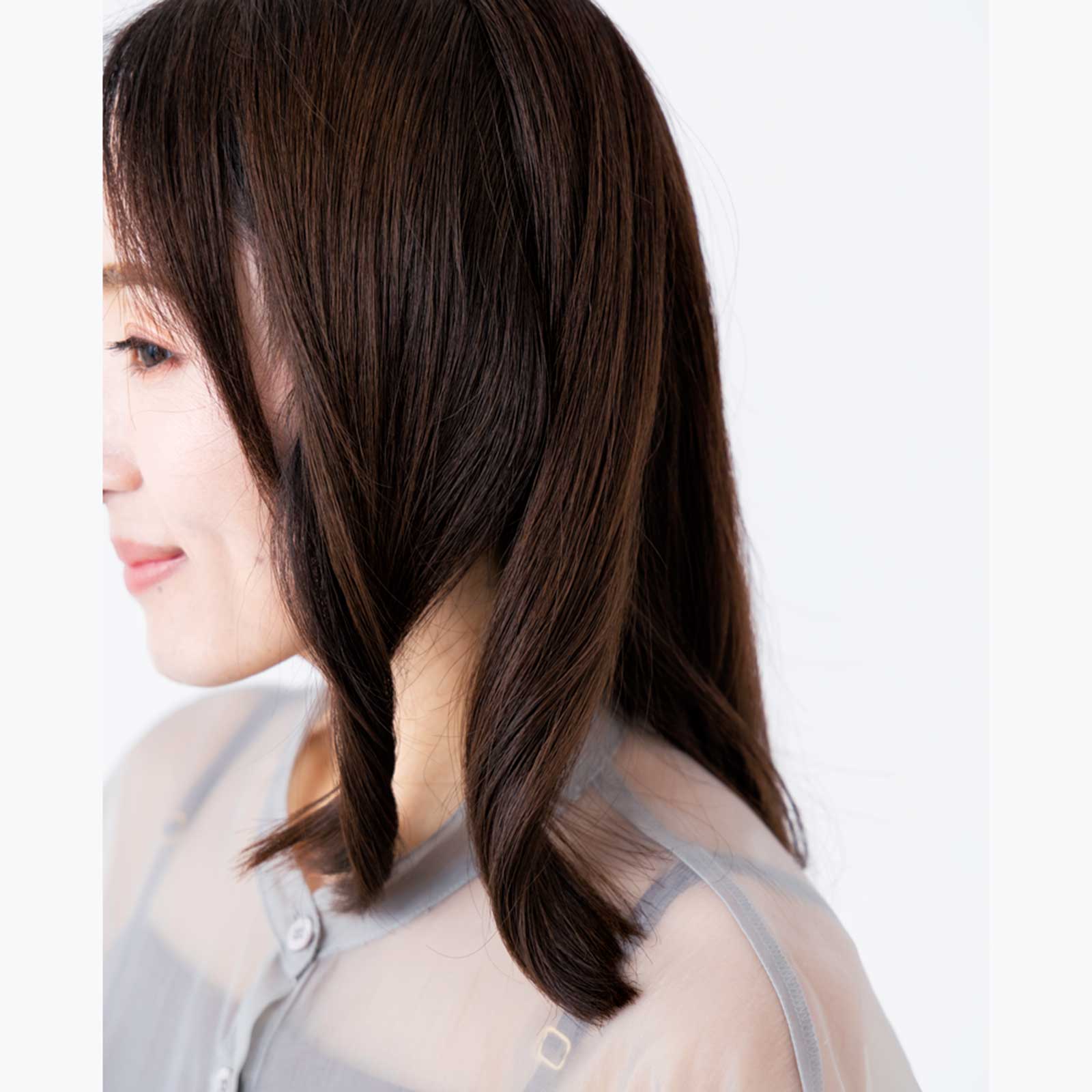 アイロンを縦に使って“ミックス巻き”をしたことで一気に軽やかな印象に! 中途半端にみられがちなミディアムが、あか抜けました!