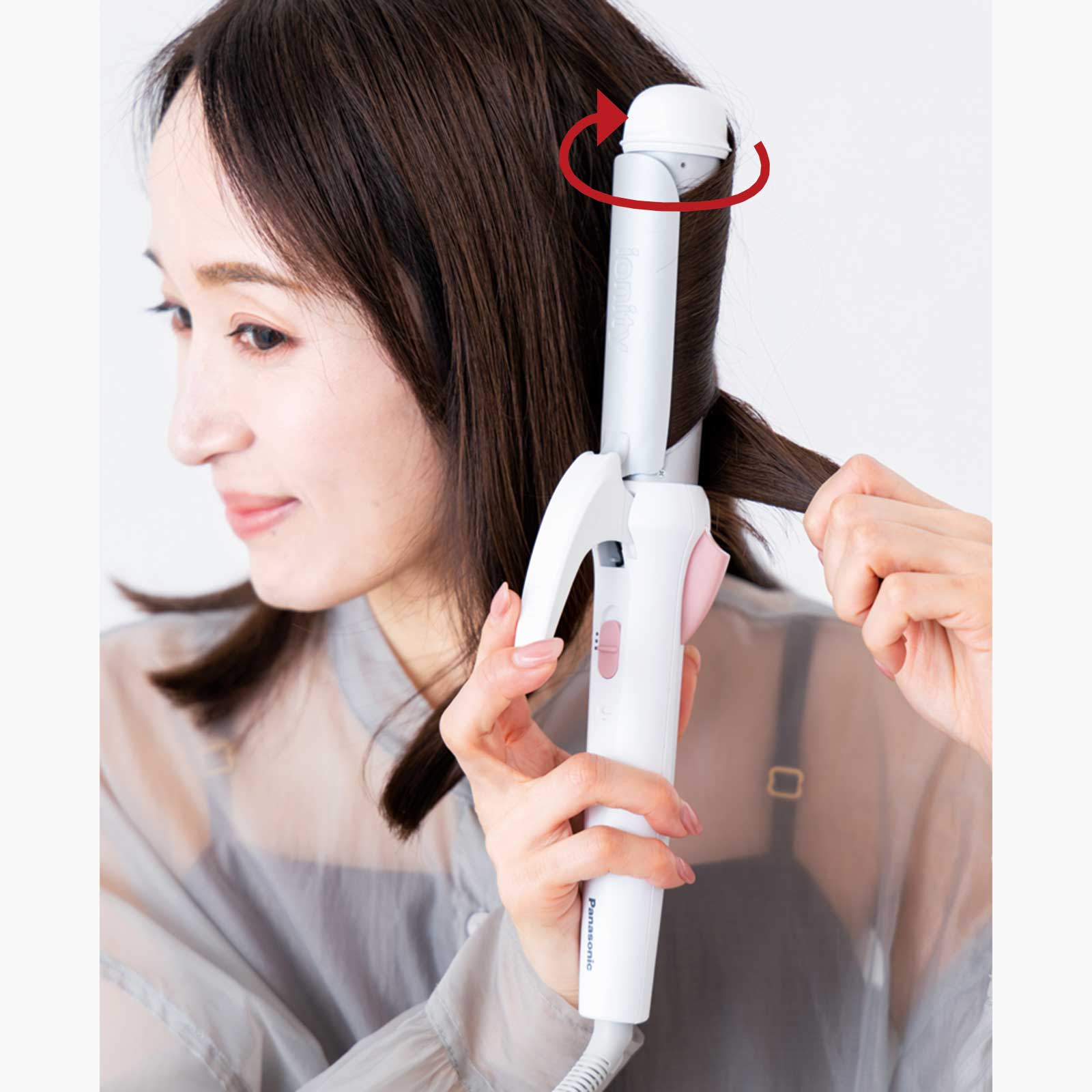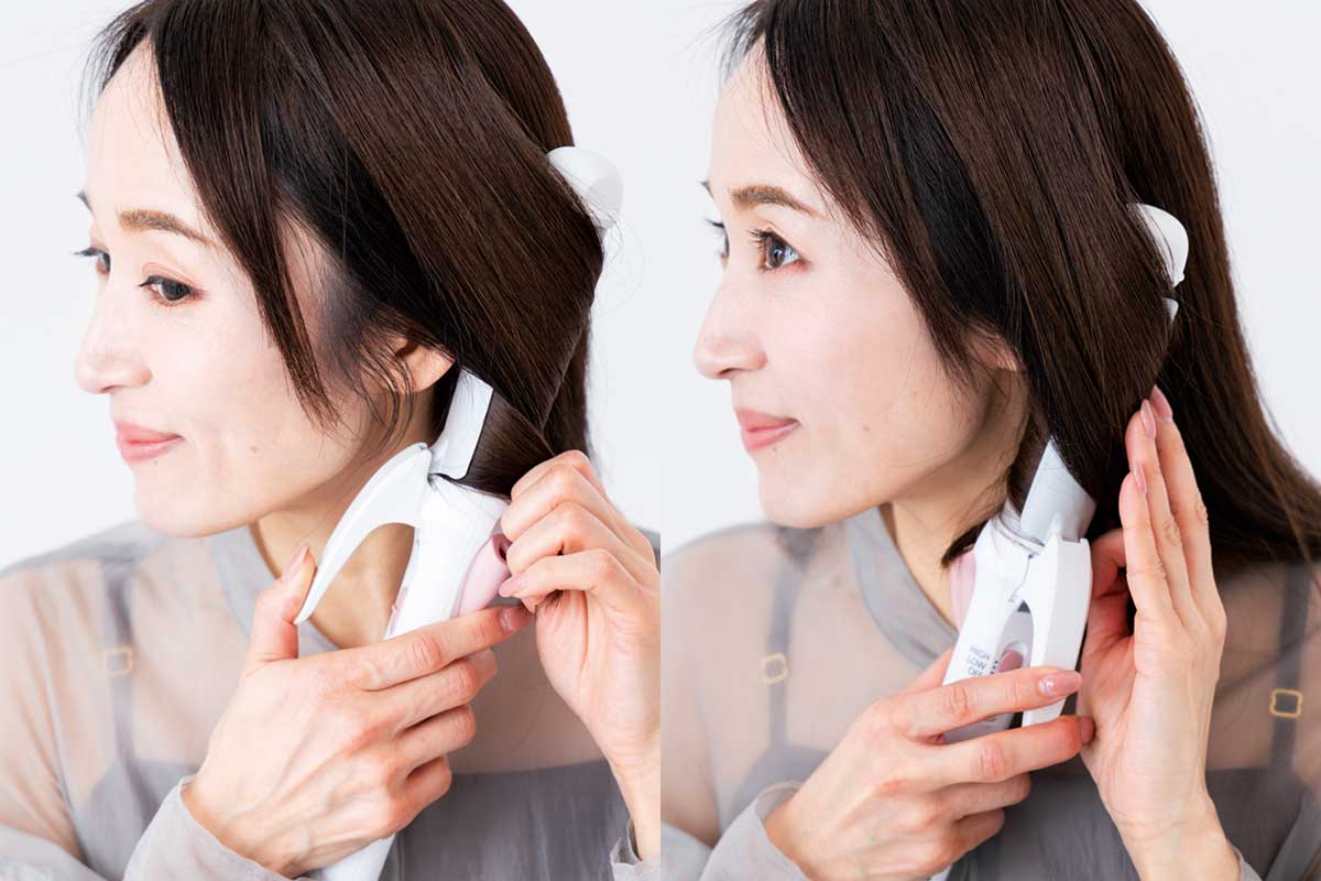 アイロンの高さや角度はそのままで内側に半回転することで、毛先までフリッパーに挟み込ませることができます。