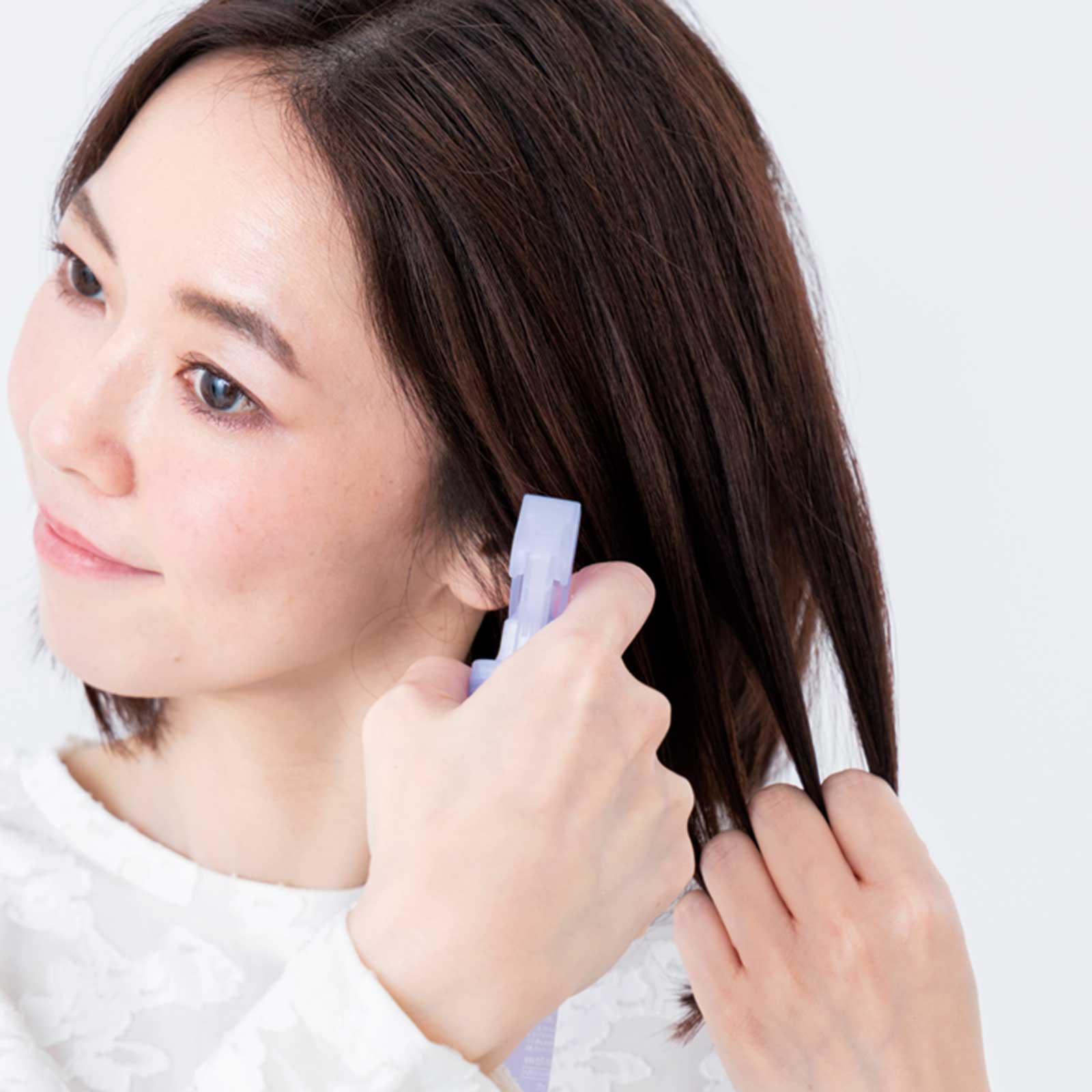 手ぐしを通しながら、表面と内側にまんべんなくミスト。