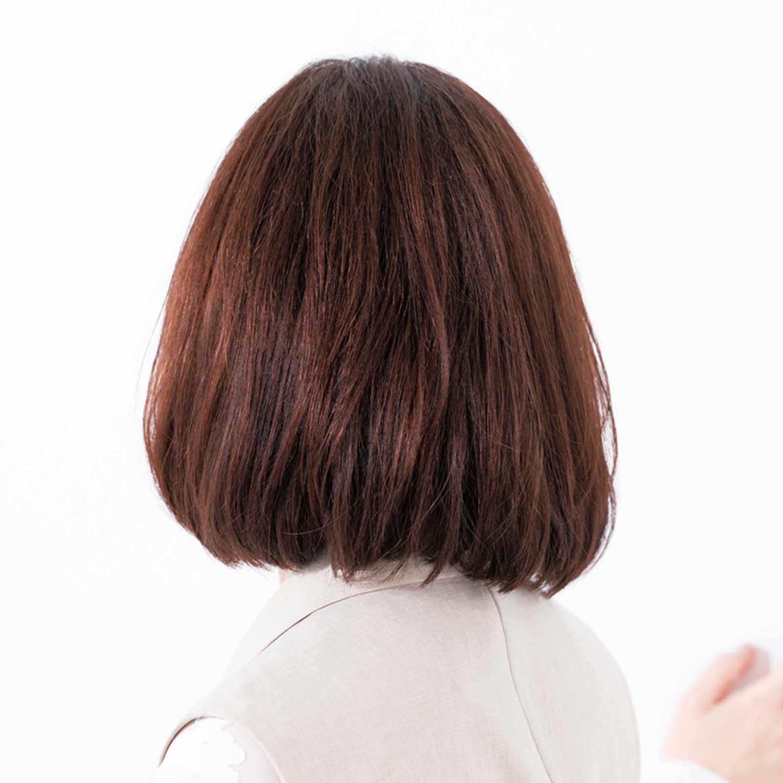 多くの人が外ハネしかできないと思っているボブですが、全体の毛先をしっかり“内巻き”にすると品のある丸みを持ったシルエットに仕上がります。両サイドの前側は上下の2段、後側は上中下の3段に分けると短い髪でも巻きやすいです。