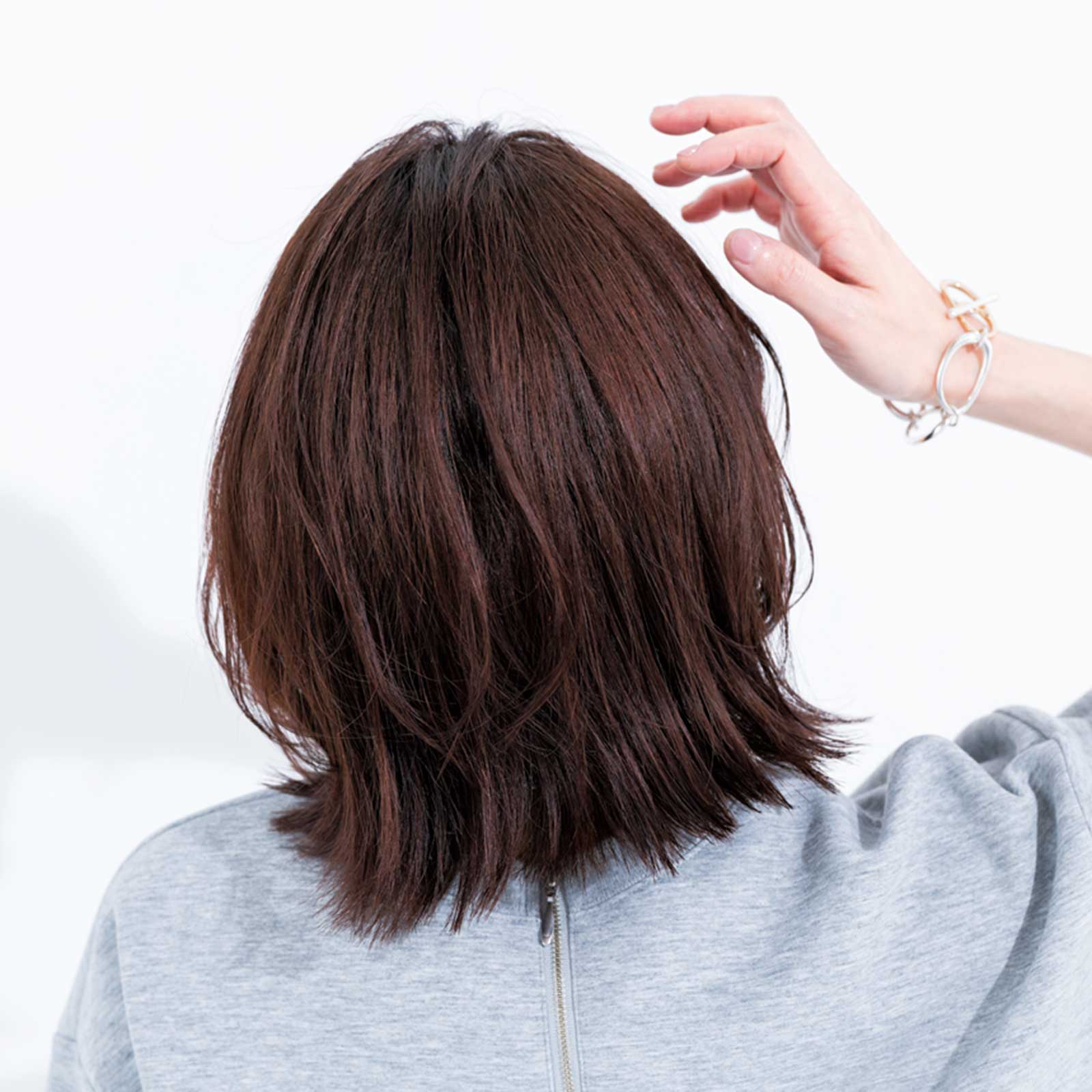 カールアイロンで巻くと古臭くなりがちですが、ストレートアイロンで仕上げたので、ラフさのあるこなれた印象に仕上がりました。
