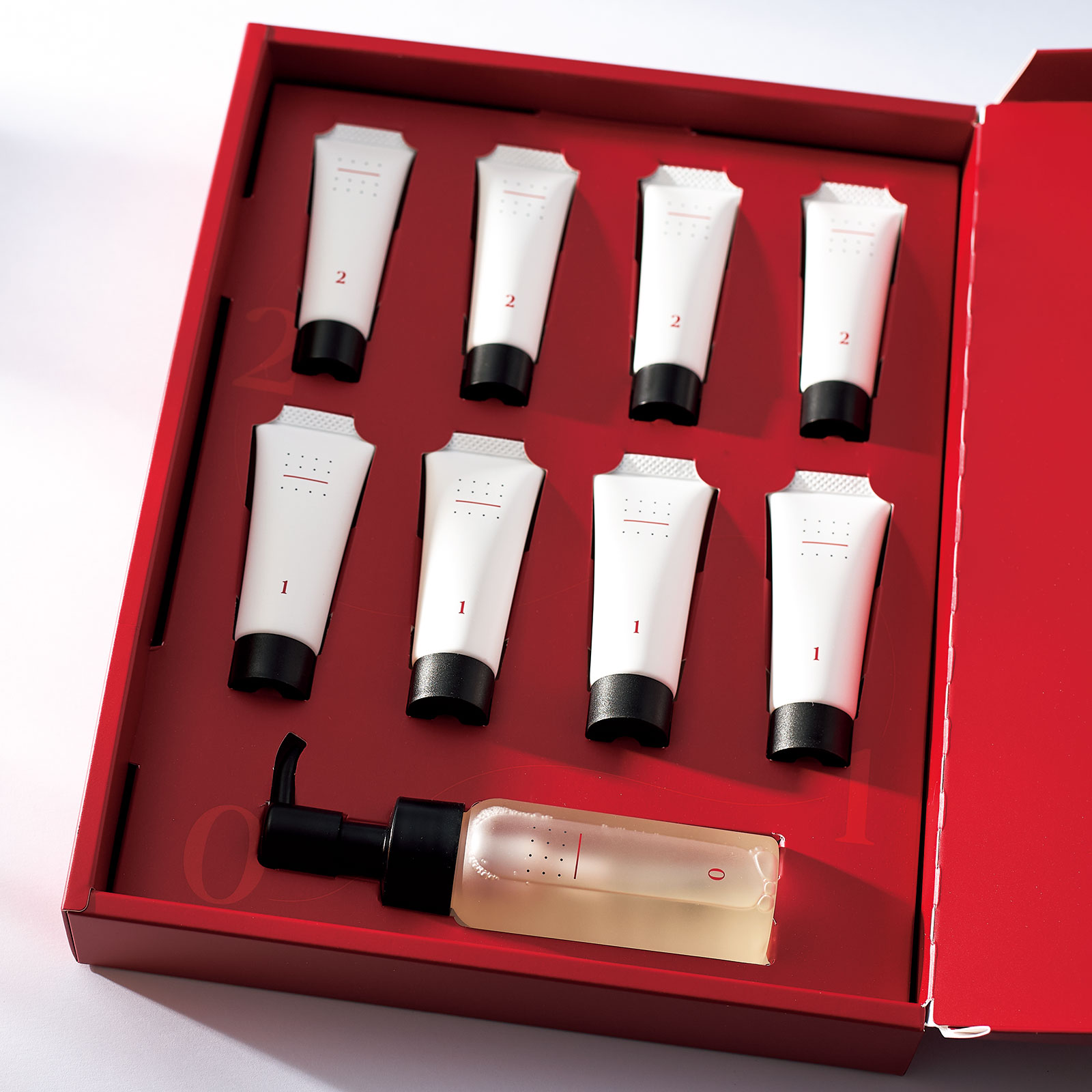 「サロントリートメントの種類が多くどれを選べば良いのか迷ったら、たんぱく質・ケラチン・水分・水素などをキーワードに選んでみて。自宅でもサロンクオリティのケアを週に一度行うことで、次回のサロントリートメントまでベストな髪の状態を手軽にキープできます」飯村さんのトリートメント理論と経験を落としこみ、独自のケラチンコーティング技術に着目したシャンプー、トリートメント、ヘアミルクのセット。allume ウィークリーシステムトリートメント ¥13,200(Nice)