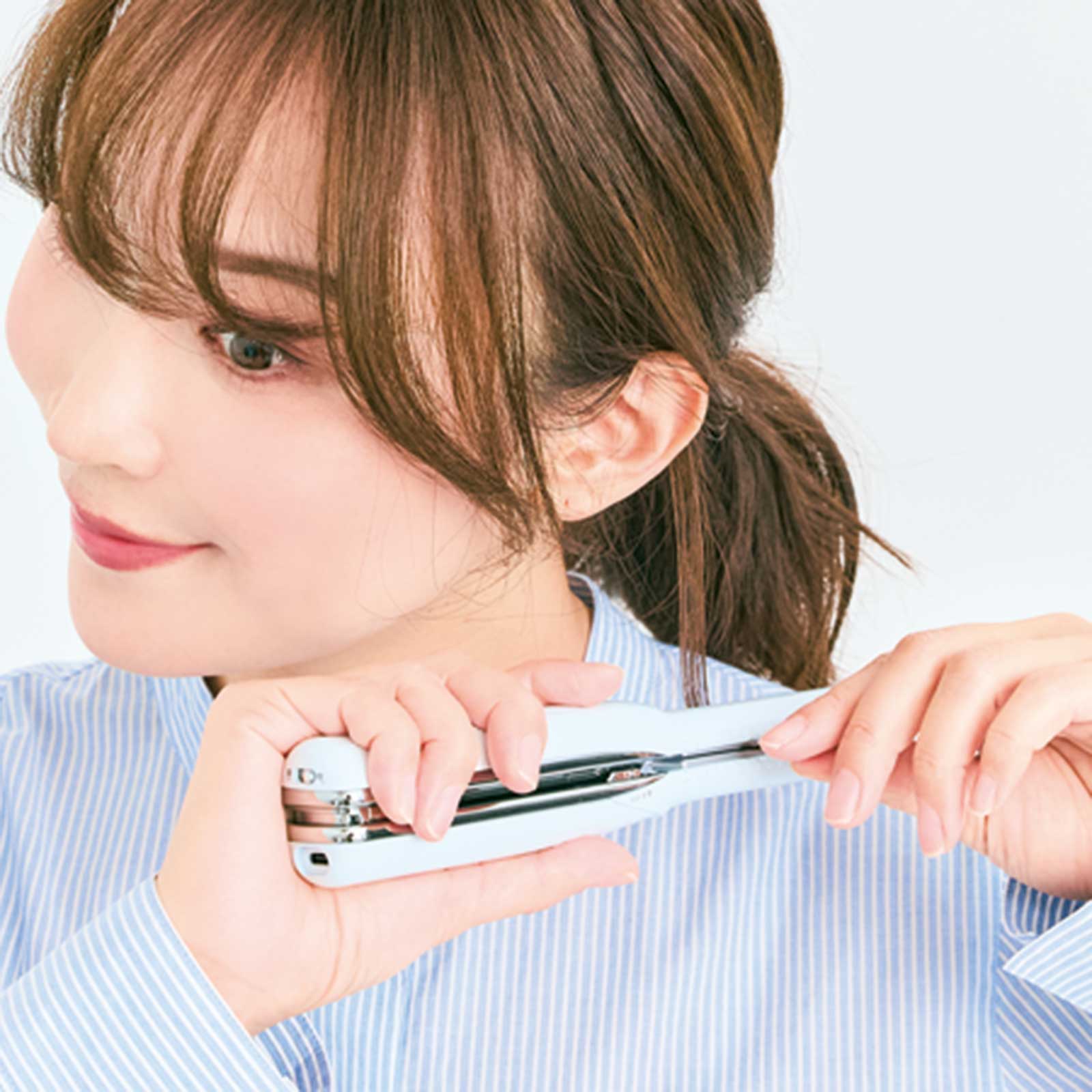 火傷の心配なく髪の根元からクセづけすることができます。コードレスだから思い通りに動かせます。リファフィンガーアイロン ST ホワイト¥14,500(MTG)
