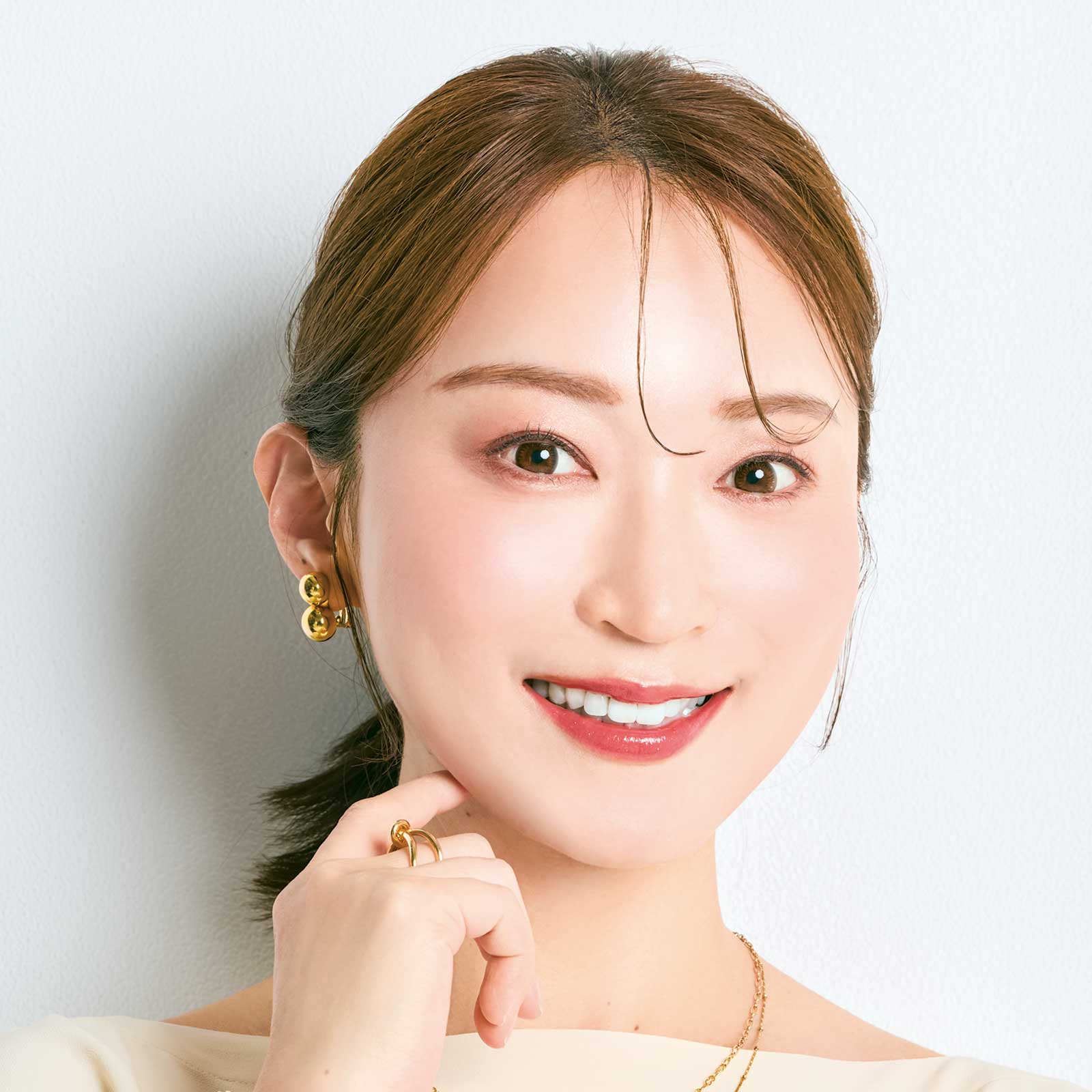 ブラウス¥16,000(バナナ・リパブリック)イヤリング¥8,800(アビステ)2連ネックレス¥2,970リング¥1,320(ともにアネモネ/サンポークリエイト)