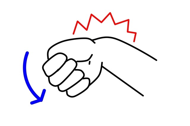 (1) 親指を手のひらの中に入れて握り拳を作る