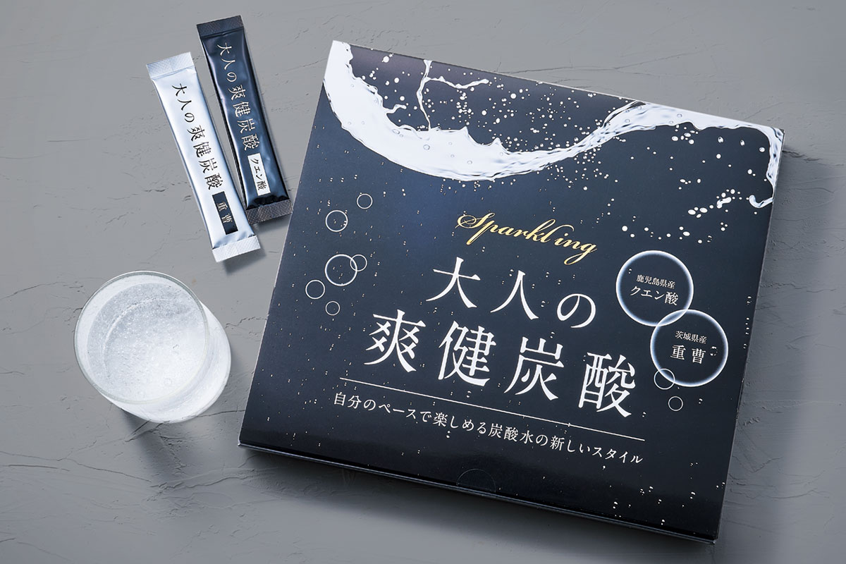 疲労物質の分解を促進するクエン酸の酸味がプラスされ、運動後にも最適。クエン酸・重曹各30包 ¥3,280(爽健ラボ)