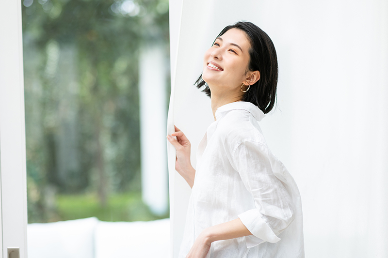 また、起床時には光を浴びてセロトニンの分泌を促すことも重要です。朝起きたらカーテンを開けて窓から光を取り入れ、できるだけ窓際の光が当たる場所で過ごしましょう。曇りや雨などの日は部屋の照明をつけるのも有効です。