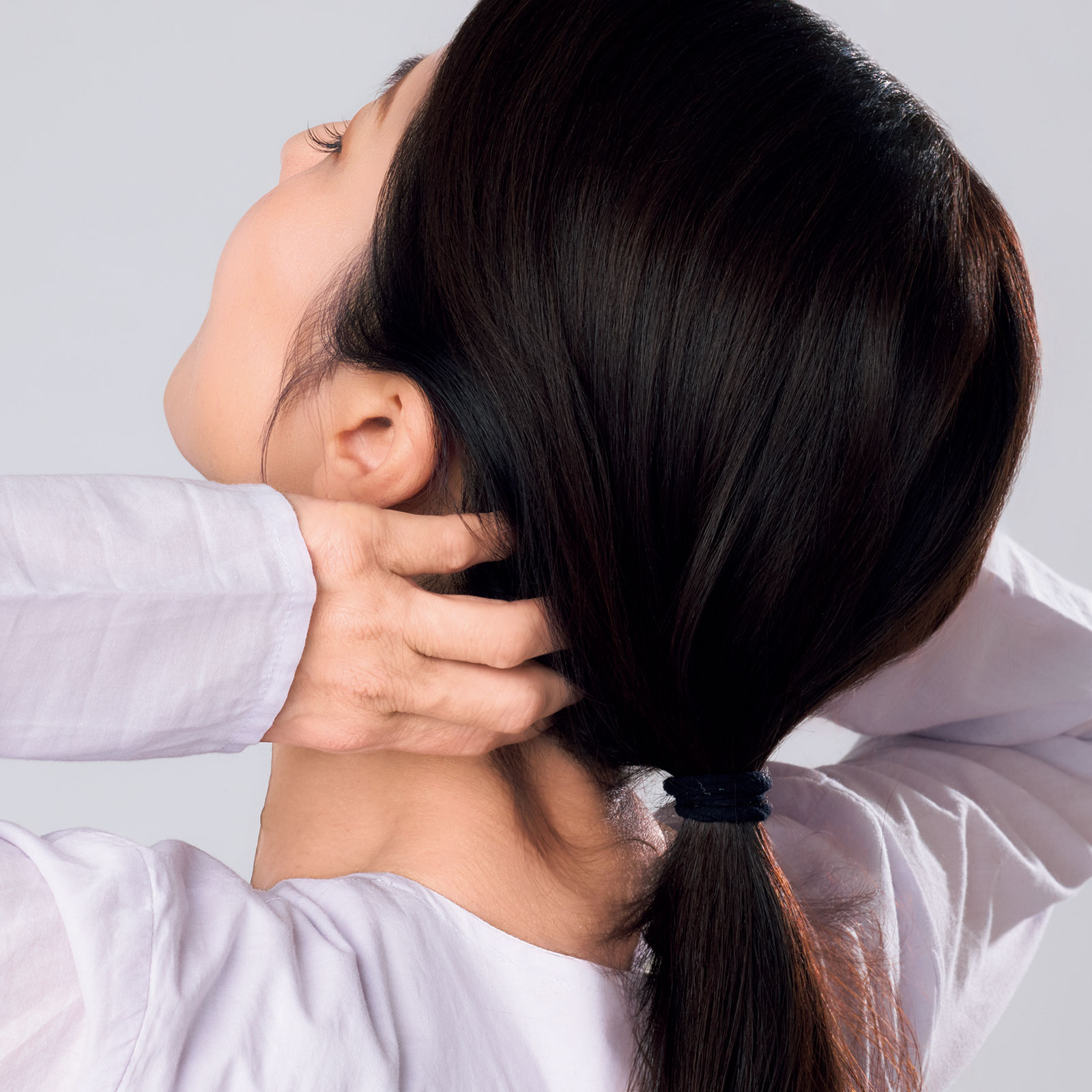 額から後頭部にかけて頭部を左右対称に分ける中心線である正中線上に脳疲労に関する8大ツボが並んでいます。前頭筋・側頭筋・後頭筋・後頭下筋群と併せて刺激すると頭皮の血流UPや眼精疲労解消もより効果的に。