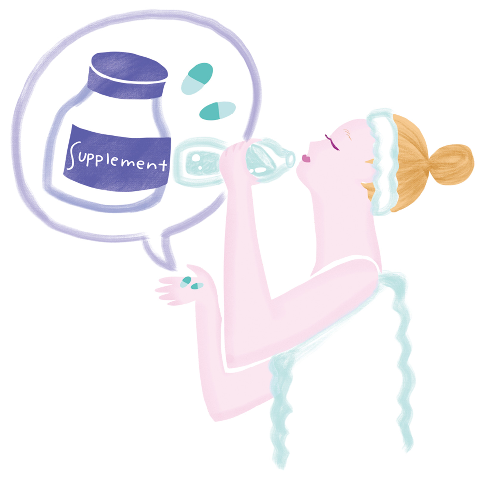 入浴後は体の水分が500〜800mlほど抜けるので入浴前後にそれぞれ150〜300mlの水分補給を。また、入浴前に摂った成分は吸収がいいのでサプリを飲むならこのタイミングがおすすめ。