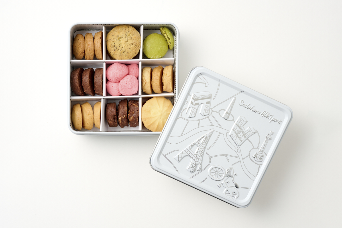 「パリの街並みが描かれた缶の可愛さから虜に♡ 中にはレーズンとシナモンを合わせたレザンなど、9種類の焼き菓子が入っていて、その美味しさは格別です! カラフルな見た目なので、美味しい物好きのオシャレなインスタグラマーの友人にも好評です」¥2,160(パティスリー・サダハル・アオキ・パリ)▶商品詳細(公式サイト)
