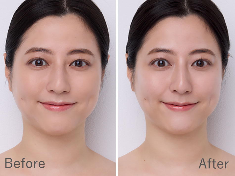 下地とパウダーで素肌美を生かしたベース作りをした後、リキッドタイプのハイライターを面ではなくポイントで仕込むことで、年齢とともに気になる“顔痩せ”をふっくら見せ。発光感がプラスされ、ノーファンデな分透明感も格段にUP!