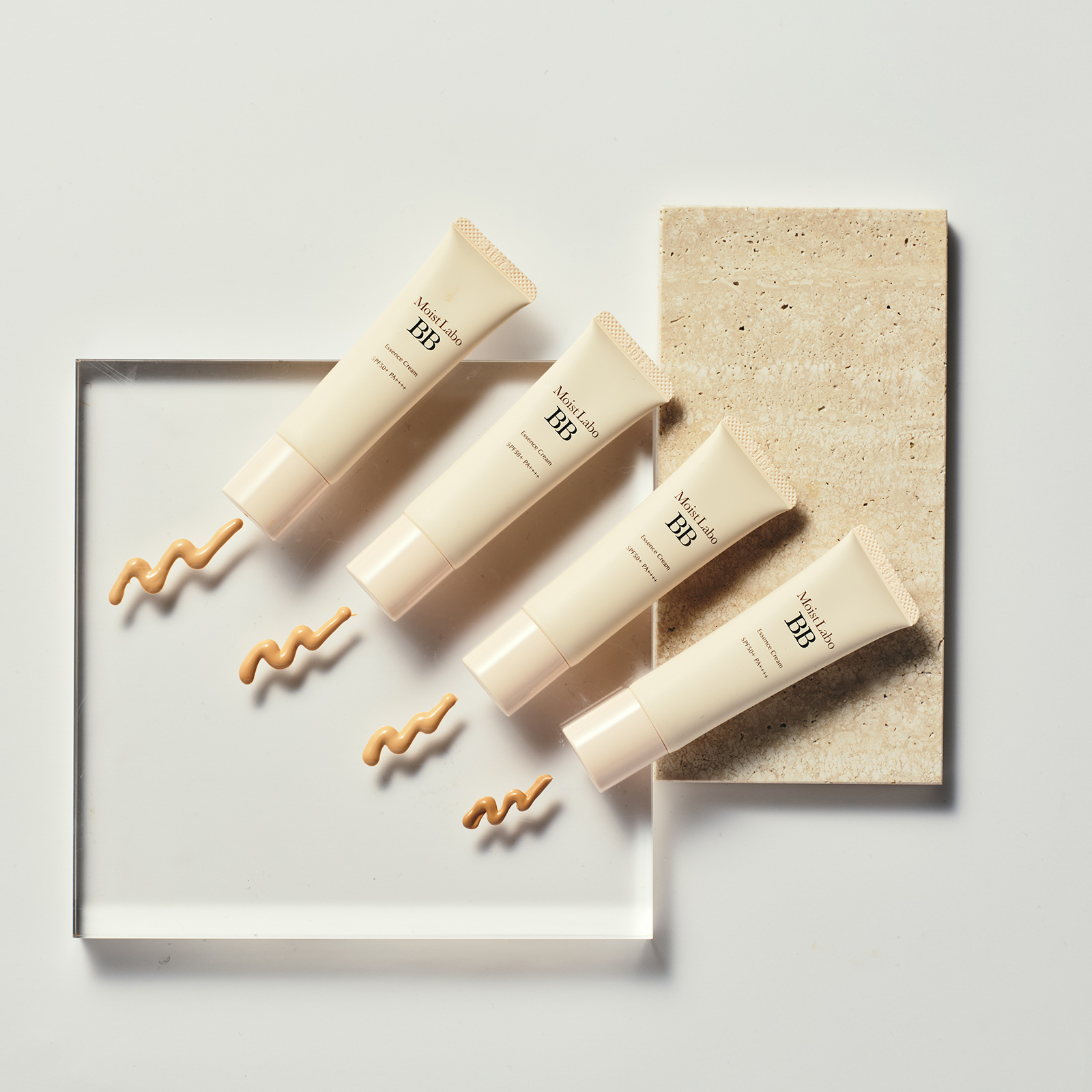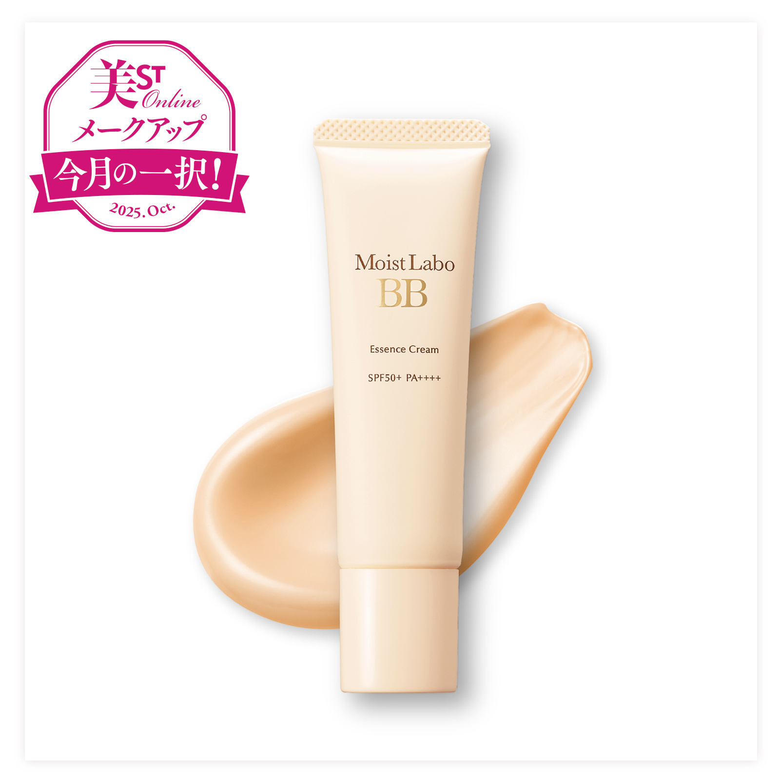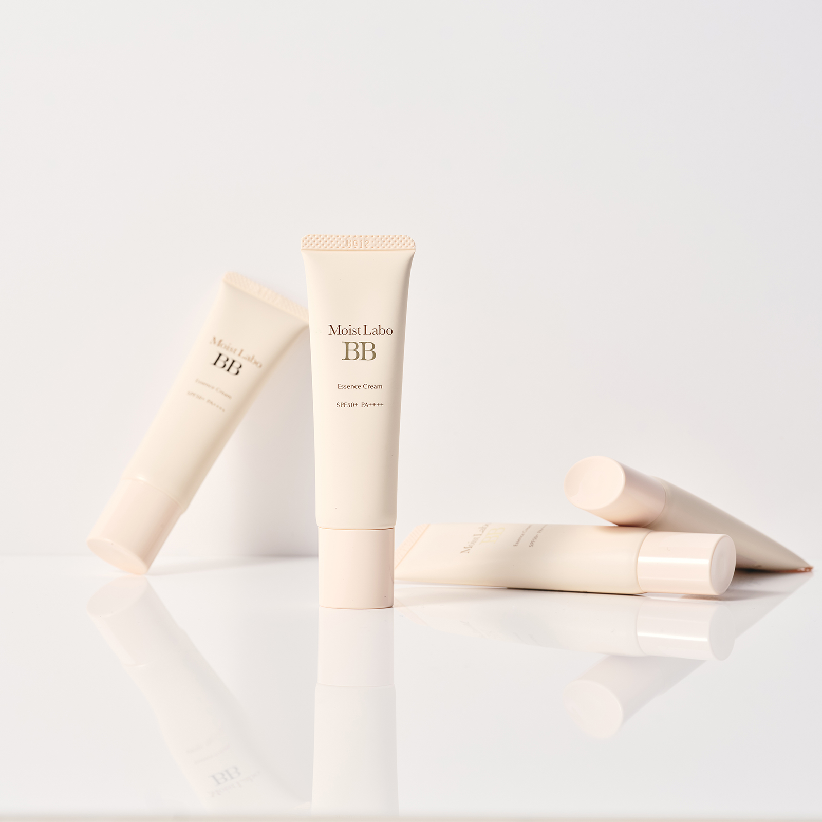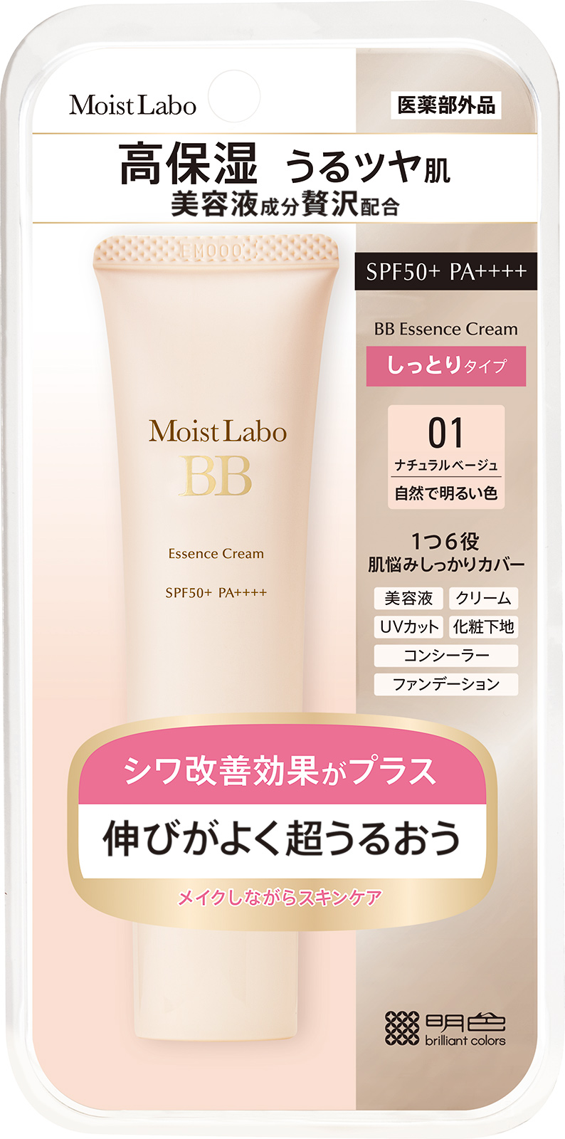 メイクをしながらシワ改善をはじめとしたスキンケアを可能にしたBBクリーム。美容成分をたっぷりと配合し、1品で美容液、クリーム、UVカット、化粧下地、コンシーラー、ファンデーションの6役を担う頼もし過ぎる存在。仕上がりはしっとりと、乾燥を忘れるほどのうるおい肌へ。ウォータープルーフ処方で汗や水にも強く、長引く夏でも安心。モイストラボ BBエッセンスクリーム SPF50+ PA++++ 全4色 ¥1,320 [医薬部外品](明色化粧品)