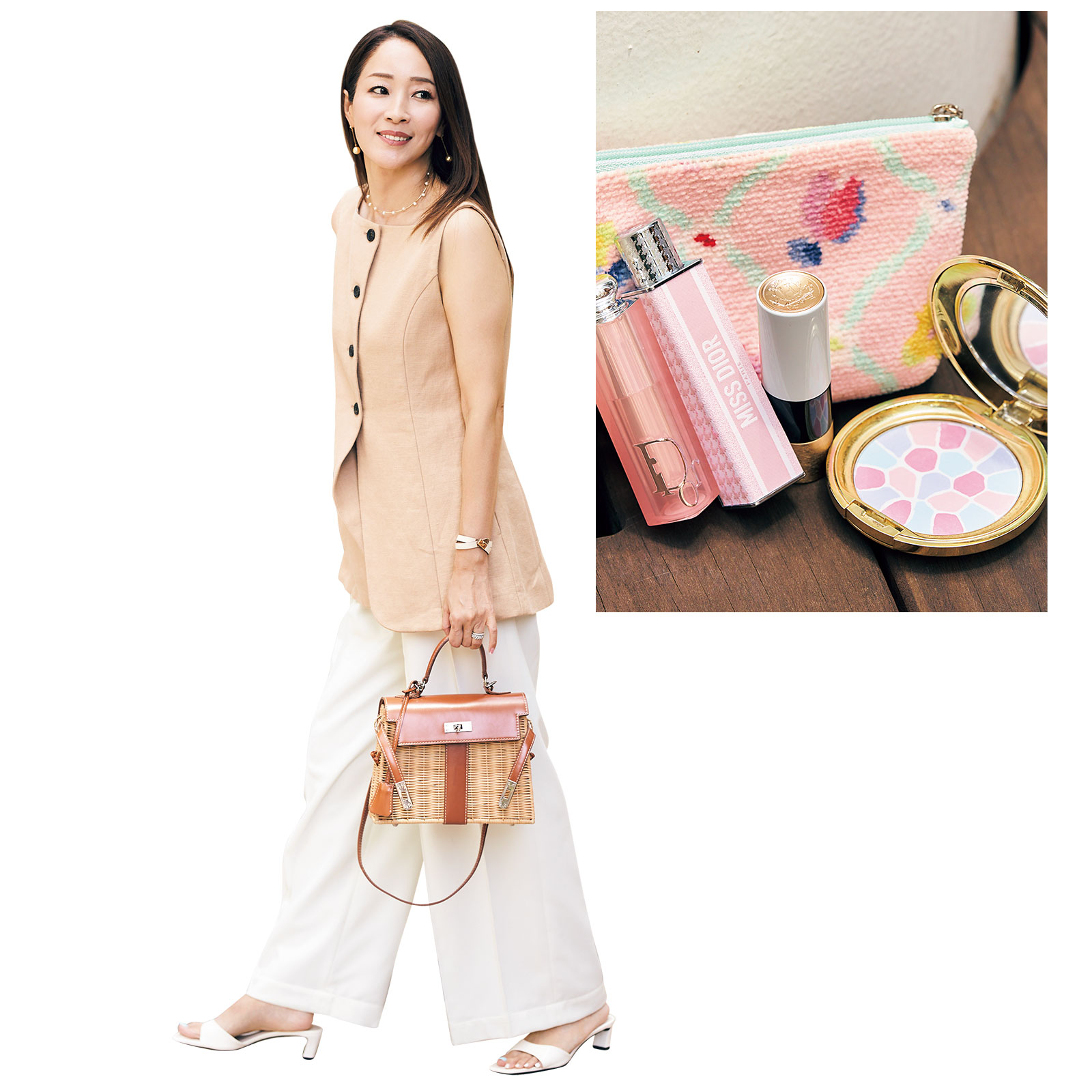 接客業なので清潔感を大切にしています。ディオールスキン フォーエヴァー クチュール ルミナイザー02で頰にツヤを足し、ジバンシイ ルージュ・アンテルデイ・バーム23の上にディオール アディクト リップ マキシマイザー012を重ねて、唇も品良く。