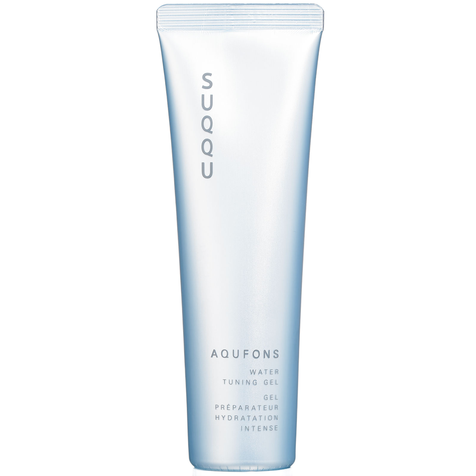 「しっかりと密着するジェルがツヤツヤの肌を作ってくれます。これをつけて寝た翌日は、ふっくらと肌が復活」。潤いを仕込む塗るシートマスク。アクフォンス ウォーター チューニング ジェル 70g ¥8,250(SUQQU)