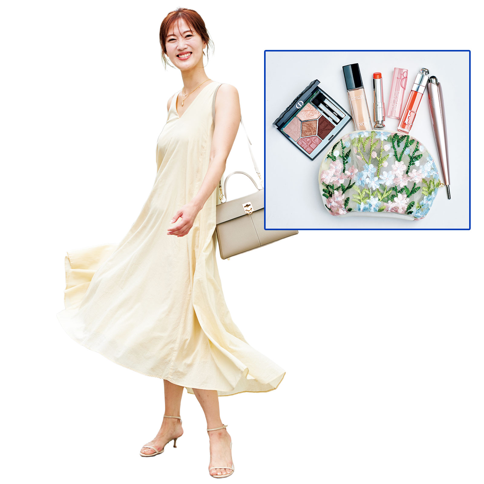 ディオールの今夏限定サンク クルール647でナチュラルな目元に。ディオール リップ グロウ004&マキシマイザー004を重ねて、夏っぽいジューシーコーラルリップが完成。ディオールのコンシーラーはお直し用。ステラボーテの美容スティックで外出先でもむくみオフを徹底!