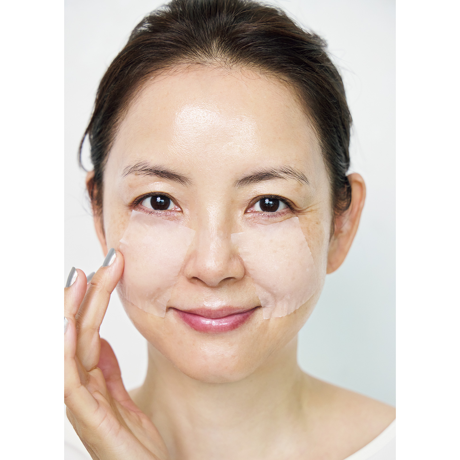 皮脂崩れしやすい小鼻の横はもちろん暑い季節にとくに緩みやすい頰の毛穴をシートパックで引き締めます。2分間のせるだけでメイク崩れを防止。この辺を保湿すると肌が柔らかくなって笑いやすい。
