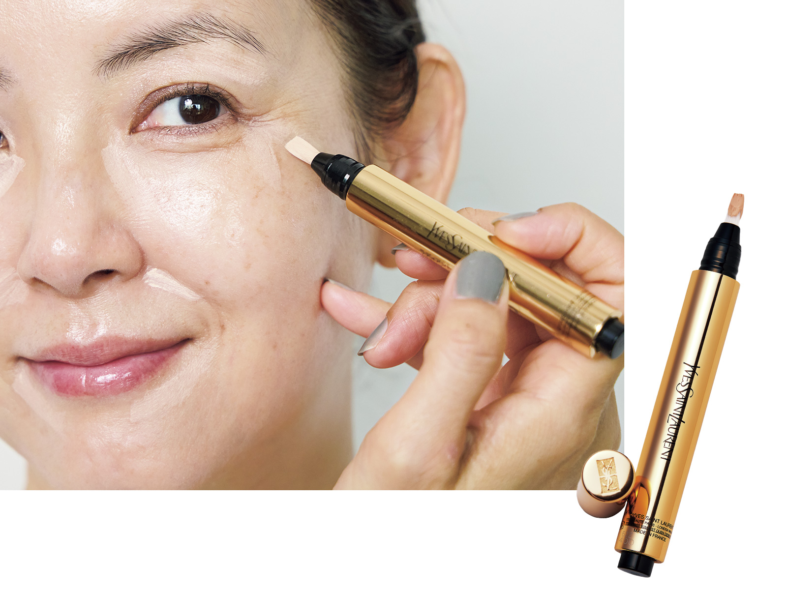 コンシーラーは明るい色と自分の肌よりやや暗いイエローベージュ系の2色を使い分けるのがコツ。肌のアラが隠れるだけでなく、自然な立体感が生まれ、ヘルシーな印象があと押しされます。