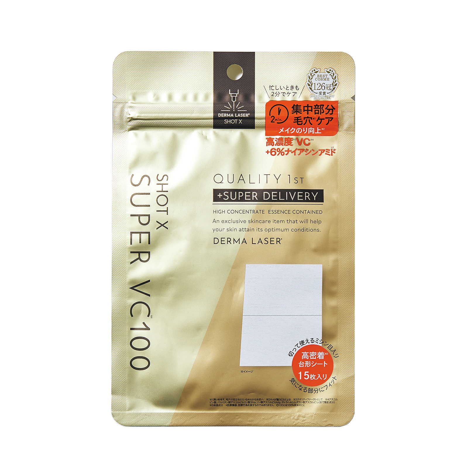 毛穴に作用する高濃度ビタミンCと6%のナイアシンアミドを配合。ダーマレーザー ショットX スーパーVC 100シート 15枚入り ¥660(クオリティファースト)<公式サイトへ>
